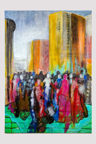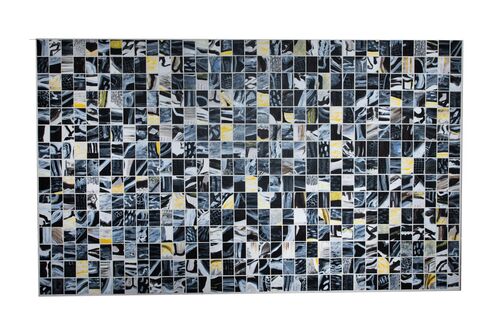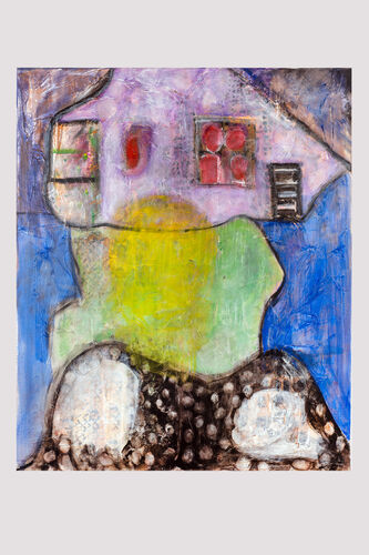 Acryl auf Leinwand, Pappe, Zeitungspapier, Stofffäden