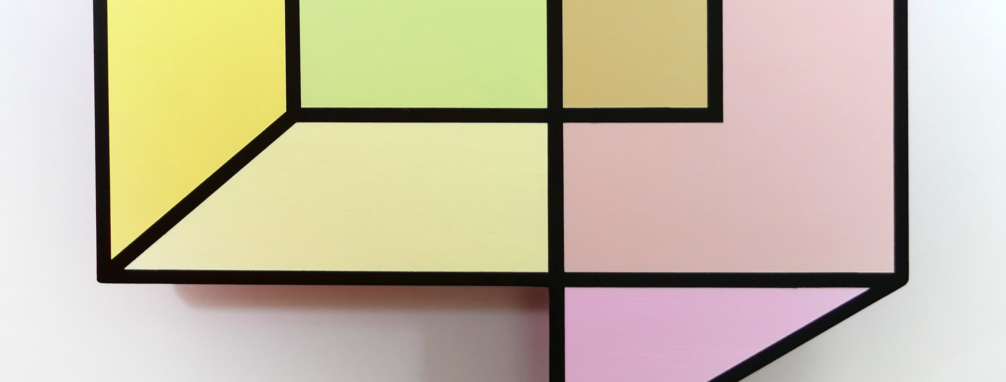 In my works, I am interested in exploring the dynamics of geometrical shapes in interplay with colour, in a minimalistic expression. I strive to create an impression of three-dimensionality and transparency, where the shapes can sometimes change under the viewer’s gaze.
