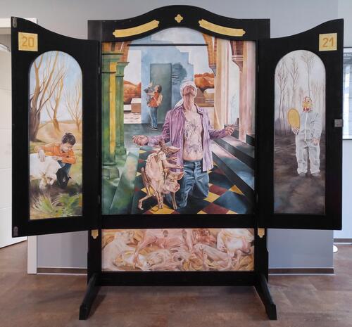 My artistic career is mainly characterized by self-taught further education. Studying clothing technology brought me closer to textile design. My work as a toy designer was made possible by my drawing and design skills. The independent activities of airbrush design and tattoo design are purely self-taught. Courses in the basics of painting at the Trier Art Academy in 2011 were the initial spark for my subsequent freelance artistic work. Since then, I have regularly attended summer academies and was accepted into the BBK Sachsen-Anhalt e.V. in 2016. I have exhibited regularly since then. Two solo exhibitions in Sangerhausen and Lübeck followed. I have been working freelance in the southern Harz region since 2020. My artistic work is characterized by collage, which was at the beginning of my freelance work and is still part of my visual worlds today. Painting, drawing, various printing techniques, coloring, transfer and textile art are combined on the image carrier. The choice of materials is also varied, so that one can almost always speak of mixed media works. I draw on my wealth of professional experience and my passion for collecting. Themes can be found in the things that surround me. Since 2011, I have devoted myself intensively to the theme of searching for traces and making traces left behind in nature, in our environment and in current events visible. Or I use traces to fill them with information. The focus is on people, whether as images or as the creators of traces. Traces that are left behind surround us always and everywhere. They can be visible or intangible... a memory, a dream. I am a seeker, a collector. I search in people's faces, on objects, in nature and in stories. The materials used, such as old textiles, magazines, papers, etc., also show signs of use. I find them at flea markets and household clearances. From the very beginning, everything is a process of assembling, a collage. This can be a pictorial idea or become a picture itself. Past and present are linked together in material and motif...and at the end of this process I leave my traces behind.