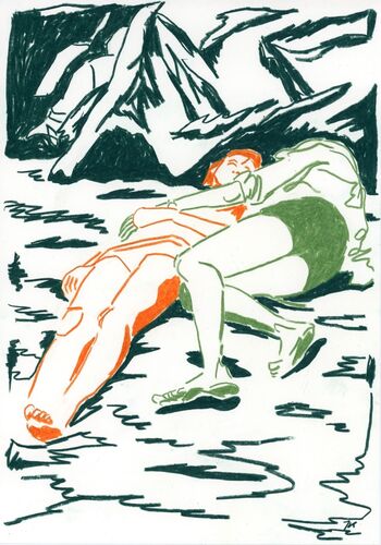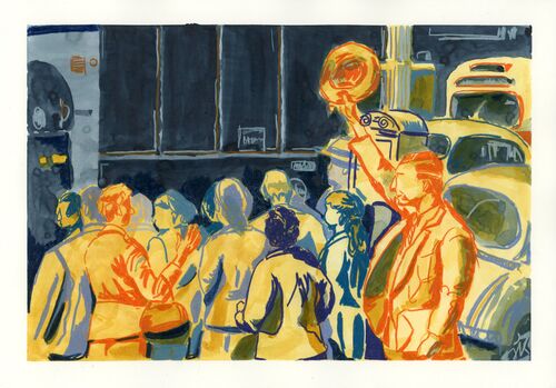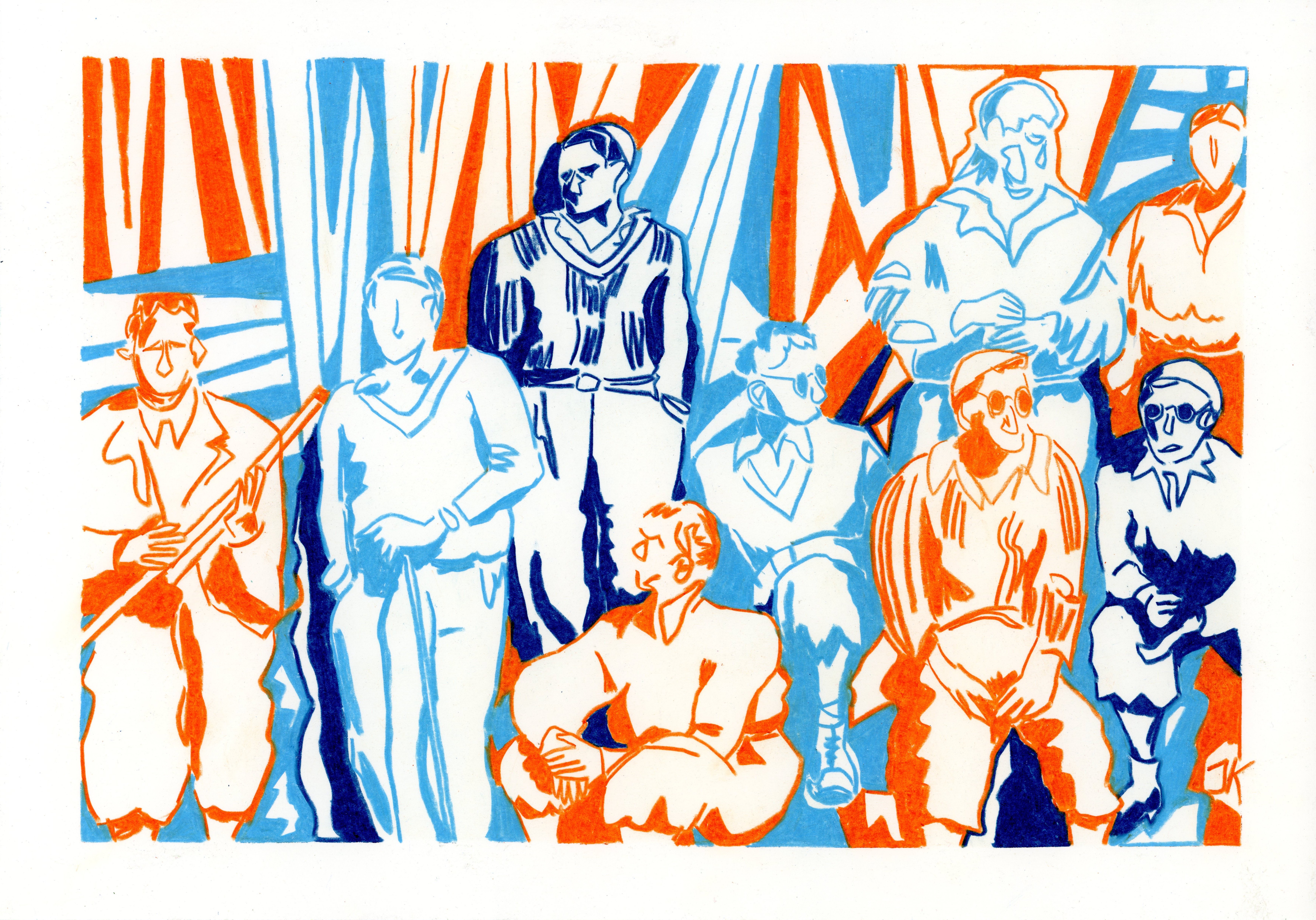 With a background in archaeology and preservation, Kubisa engages found photographs as raw material. These images, often fully separated from their original contexts, are reinterpreted through a limited palette and complex studies of gesture and gaze. Rather than restoring what is absent, the work draws out what continues to resonate beneath the surface.