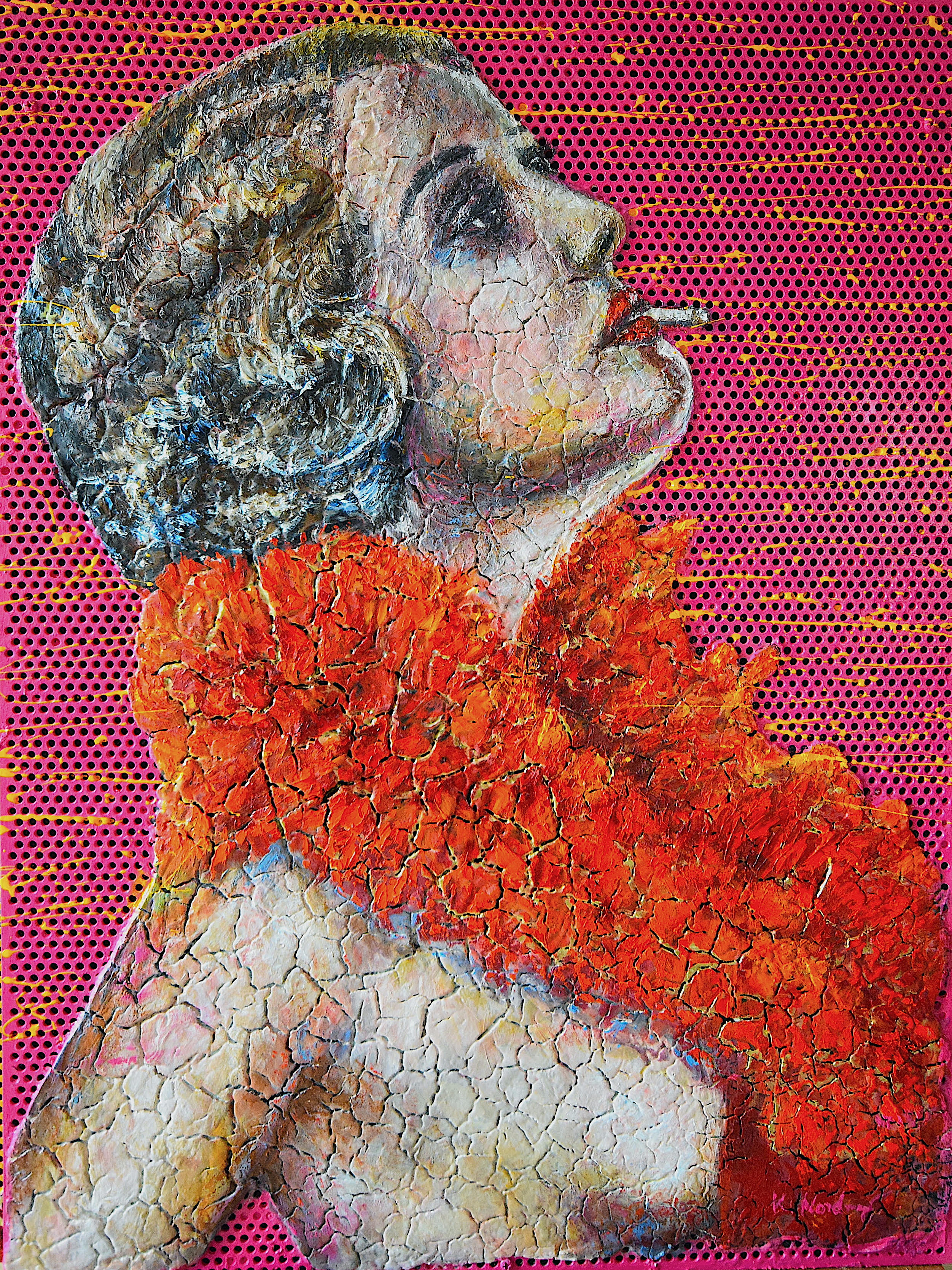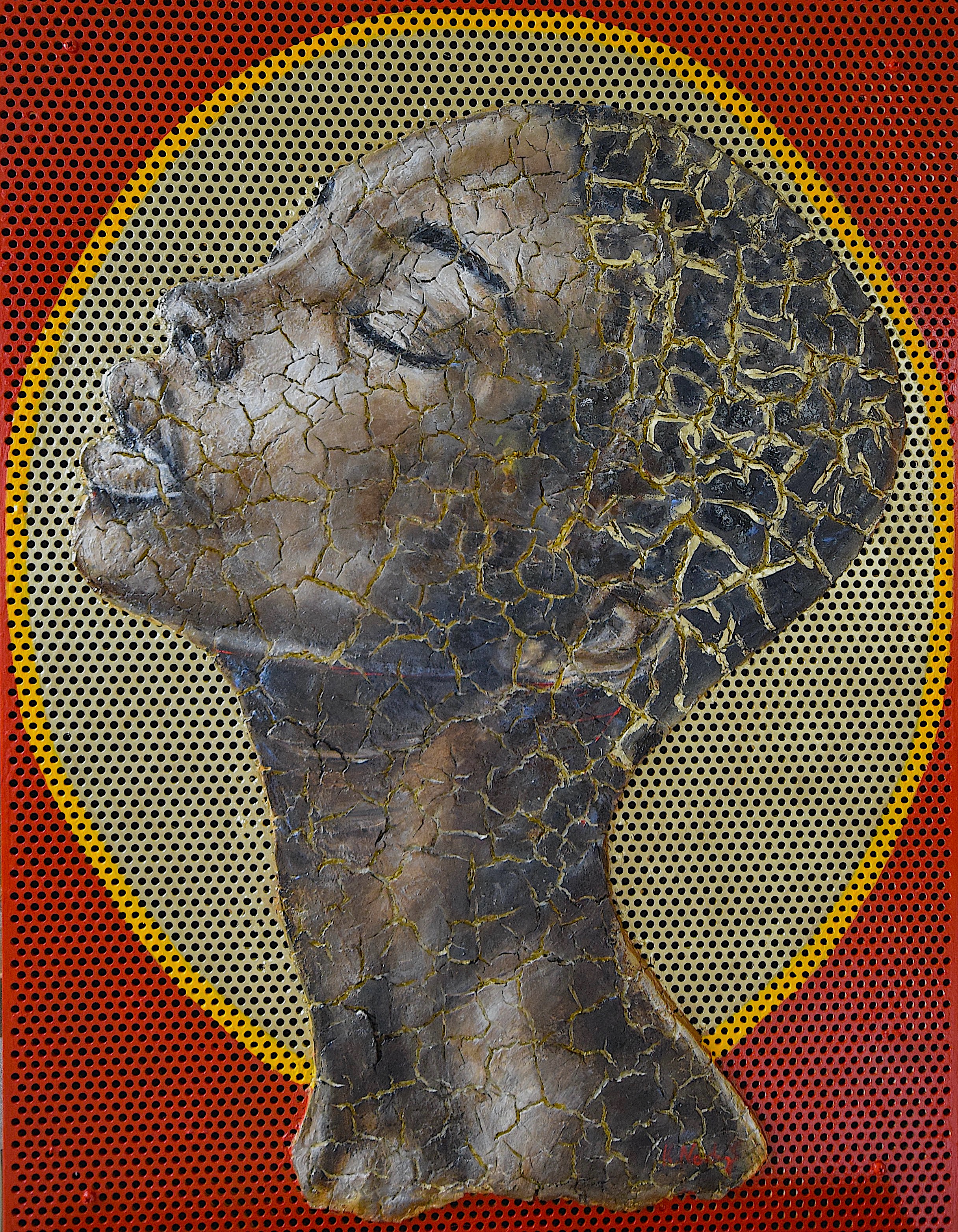 Oil & mixed technique on perforated aluminium