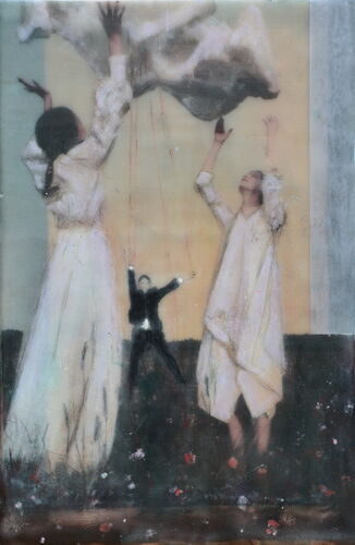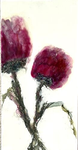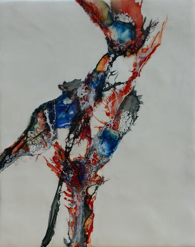 Neben der Ölmalerei gilt meine große Liebe dem Malen mit Feuer, also der Enkaustik, einer 3000 Jahre alten Technik der Wachsmalerei. Diese Technik, deren Grundmaterial mit Damarharz vermischtes Bienenwachs ist, eröffnet nicht nur die Möglichkeit der transluzenten Malerei und das Erschaffen porzellanartiger Oberflächen, sondern auch das Einbinden der unterschiedlichsten Materialien, wie Ölfarben, Tinte, Schellack, Prints, Fotos und vieles mehr.