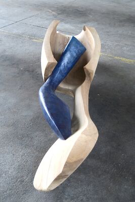 beech wood bit-technique; ultramarin-blue colored translucent varnish; epoxy resin; carbon fibre laminate