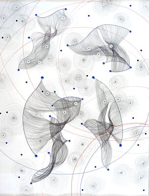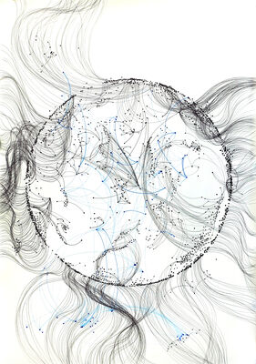 Fineliner, pencil and coloured pencil on bristol cardboard