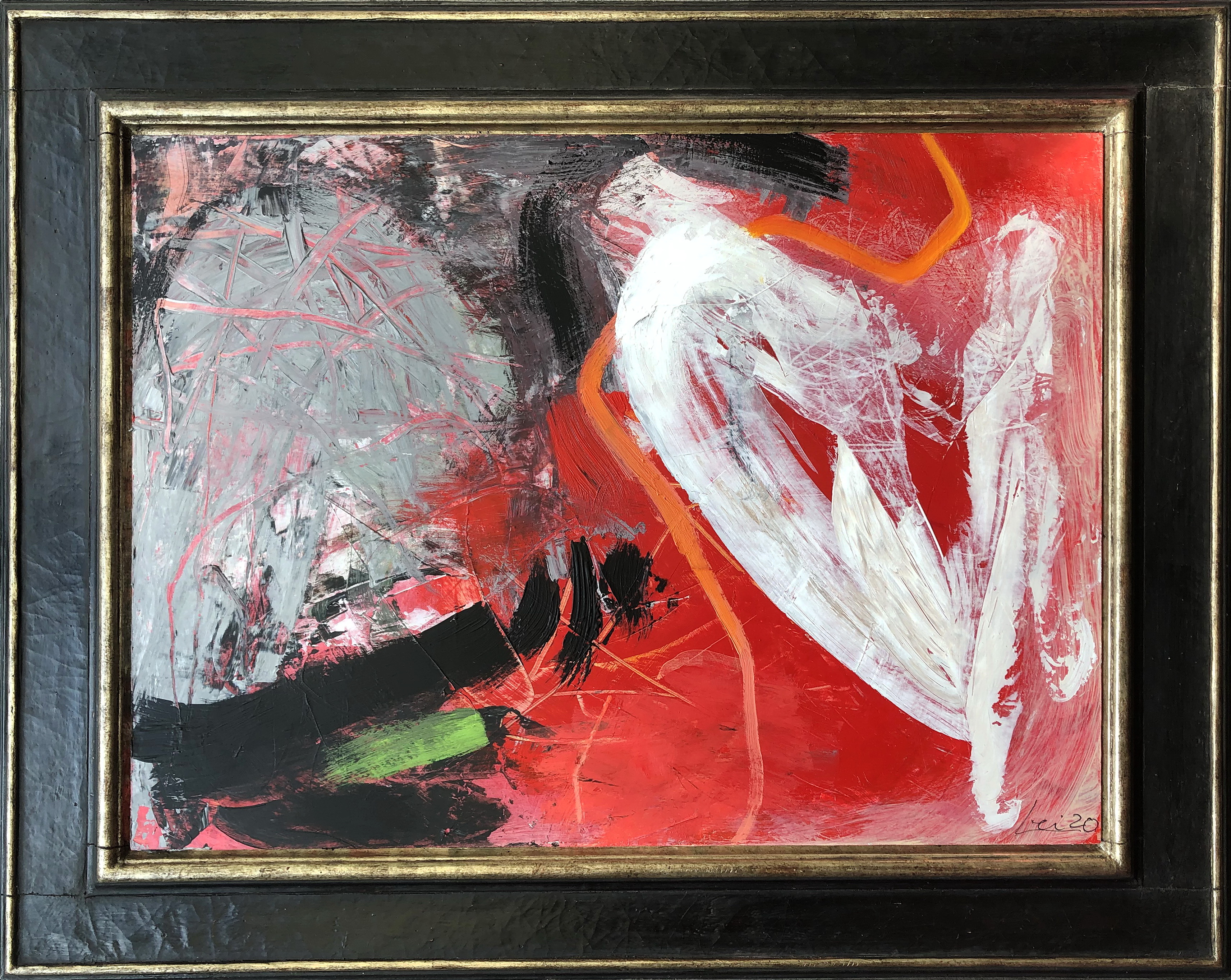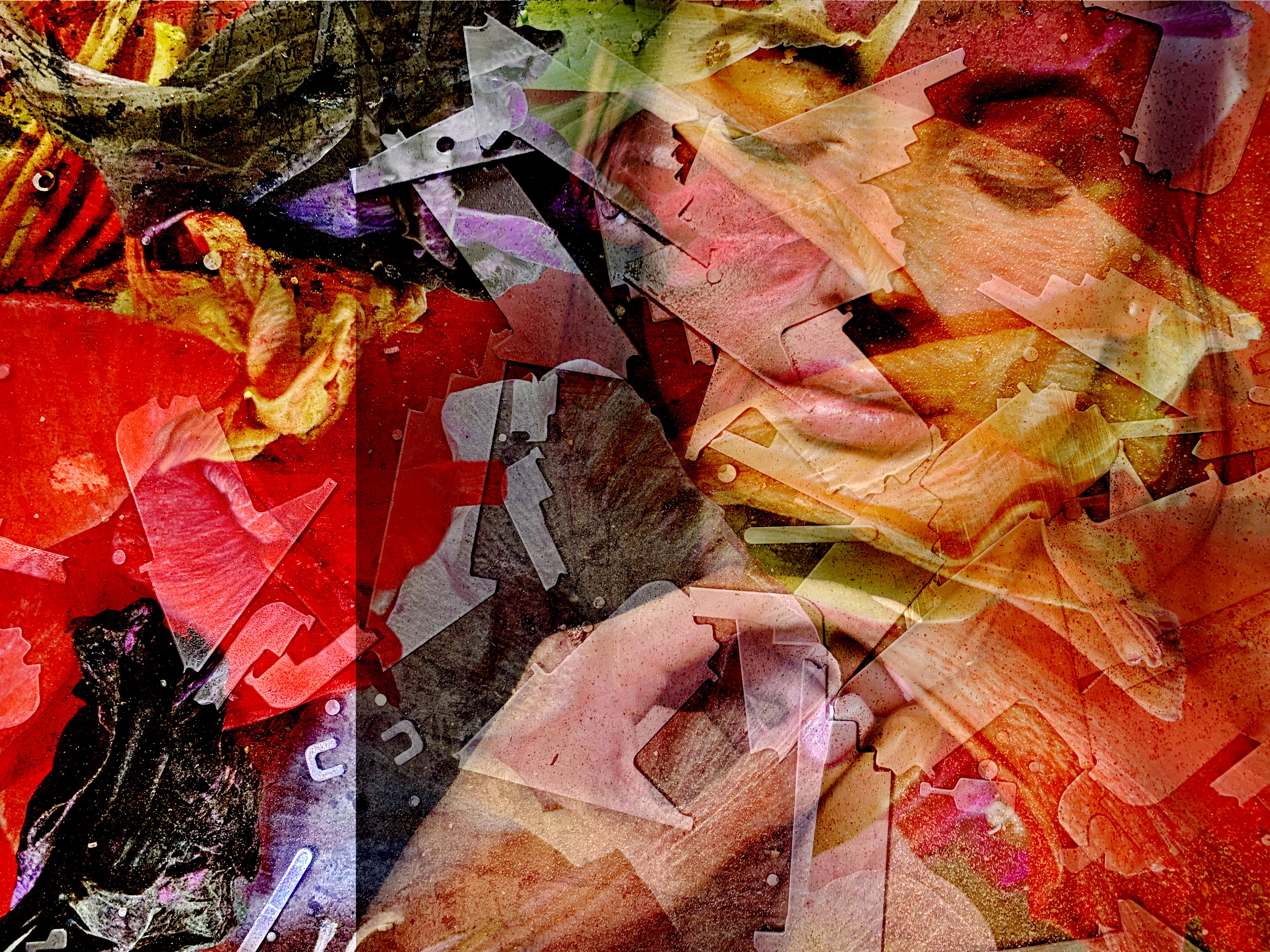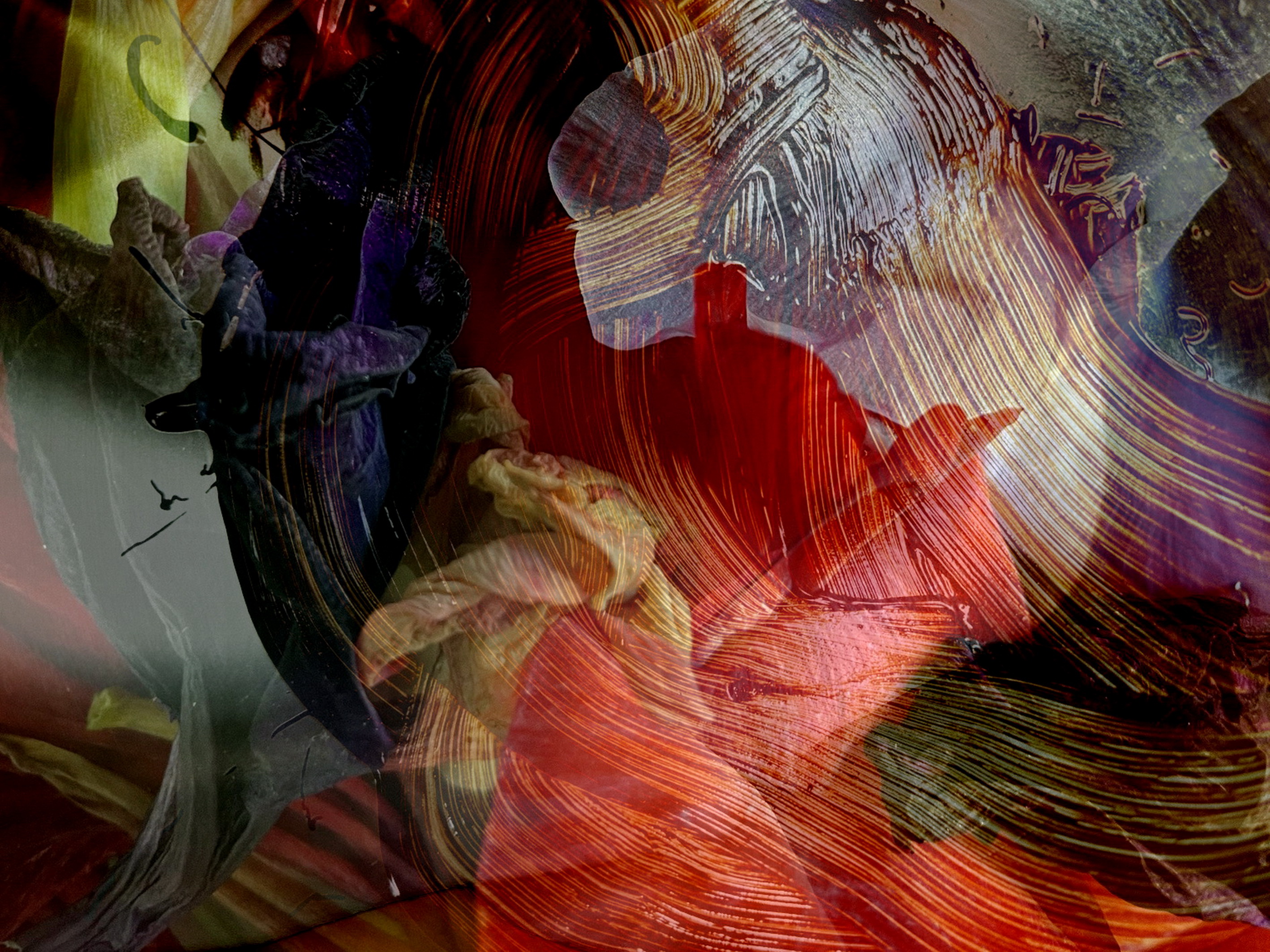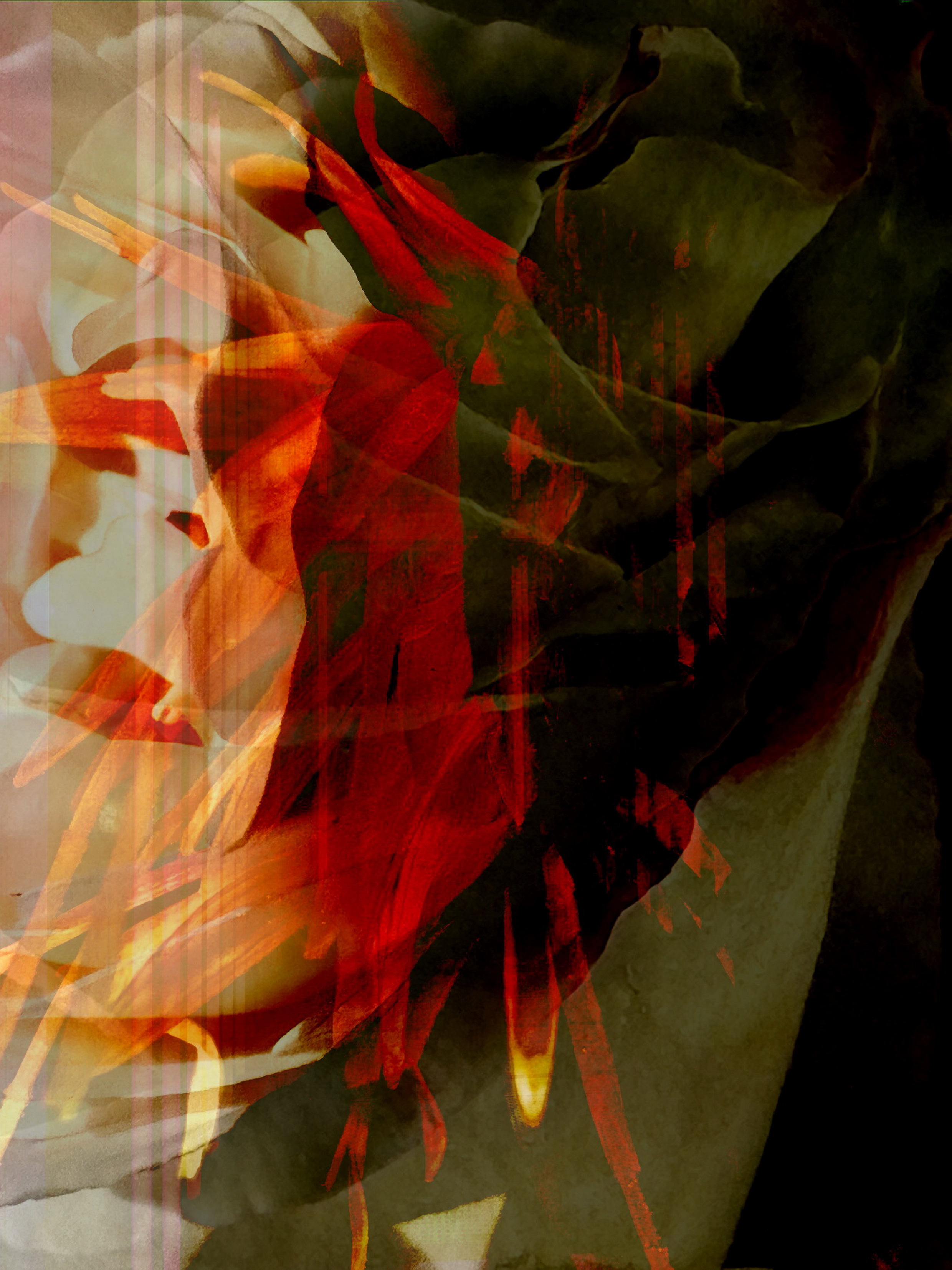 The digital artwork titled IKARUS represents the tale of Ikarus, showing the moment of getting burned by the sun after having approached too near to the sun. This multi Layer work visualizes the dramatic situation by exploding orange and red structures of colours, giving the scene a dramatic character and mystery also by intense light-dark contrasts.