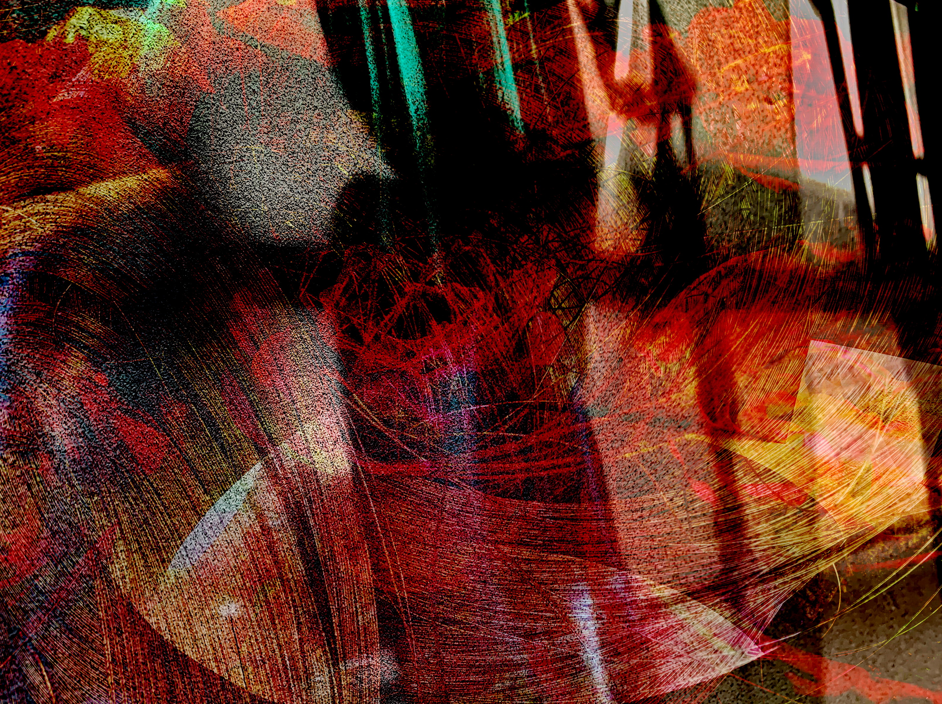 My abstract digital painting addresses an actuel conflict between nature and artificial intelligence in technical progress and developments.