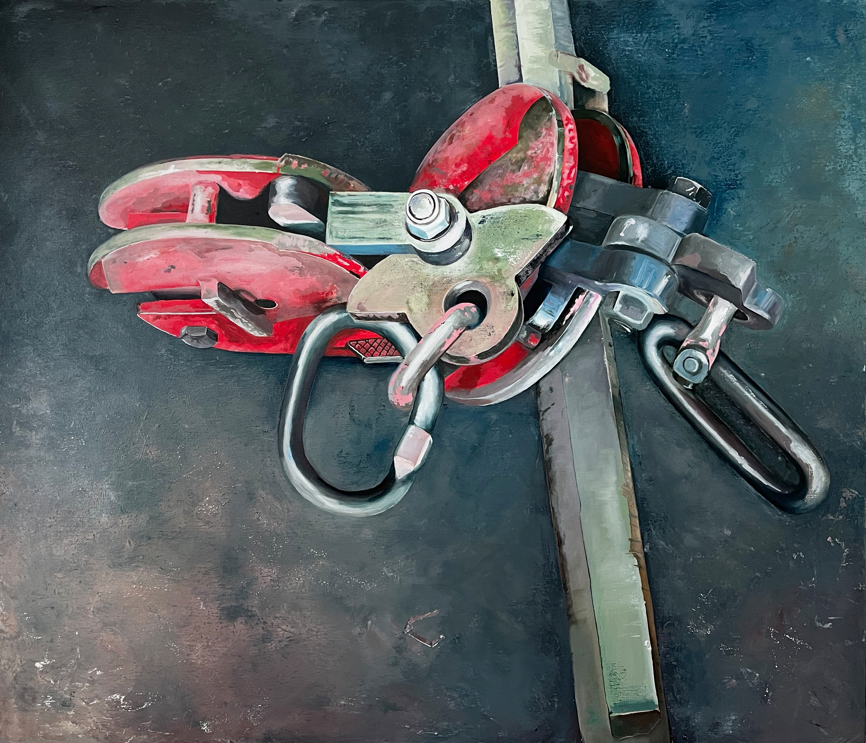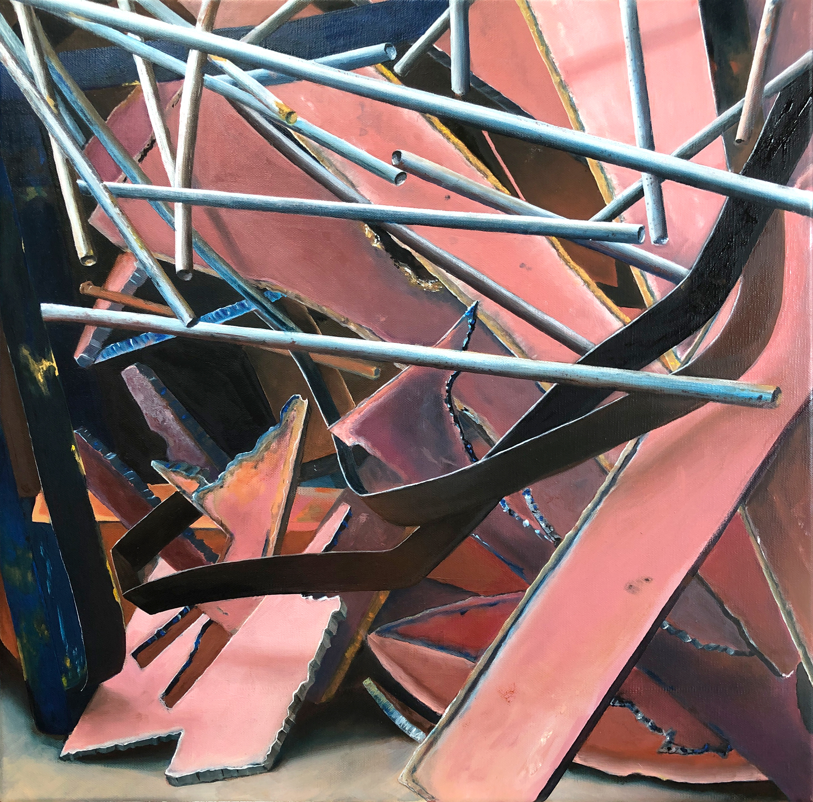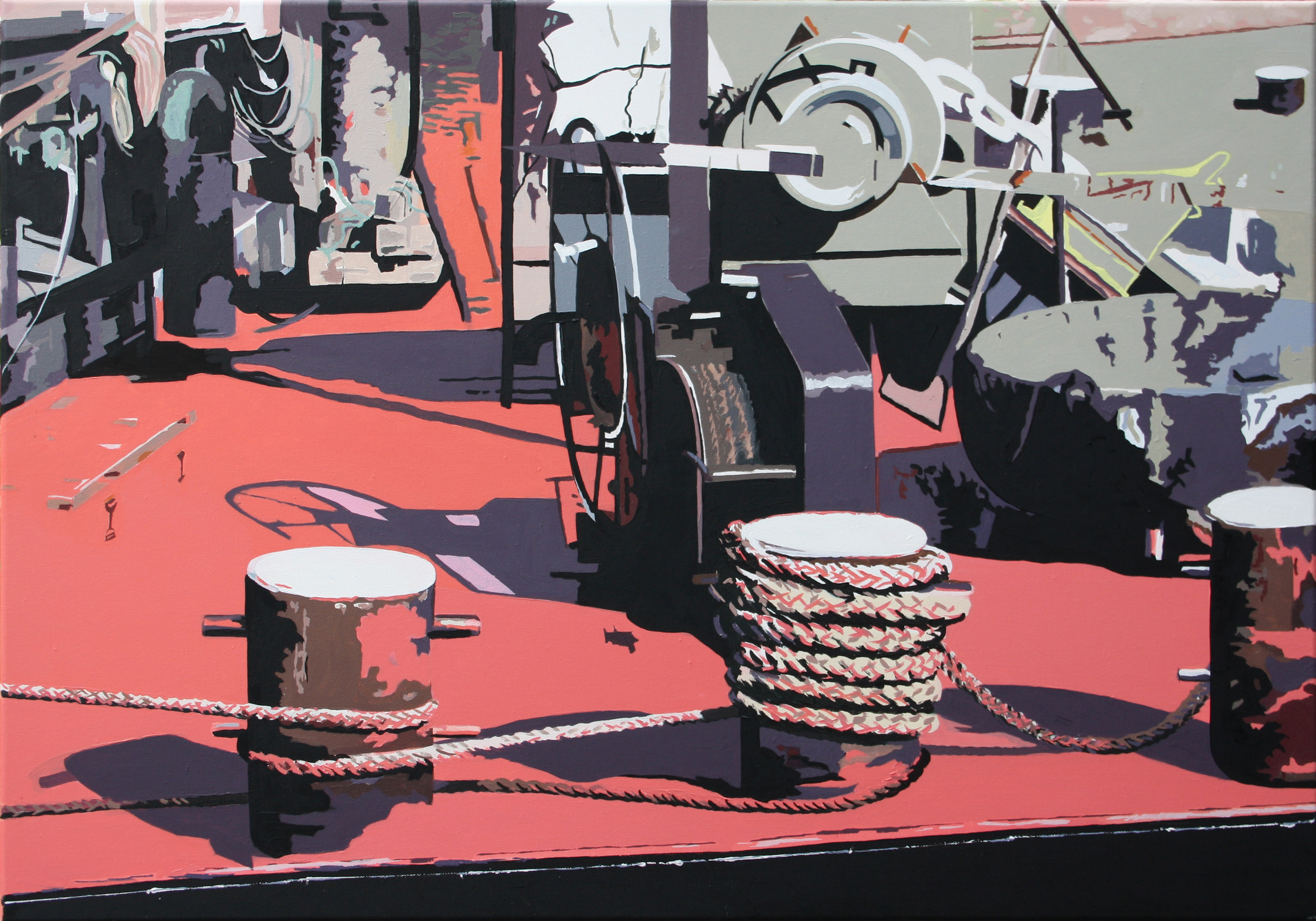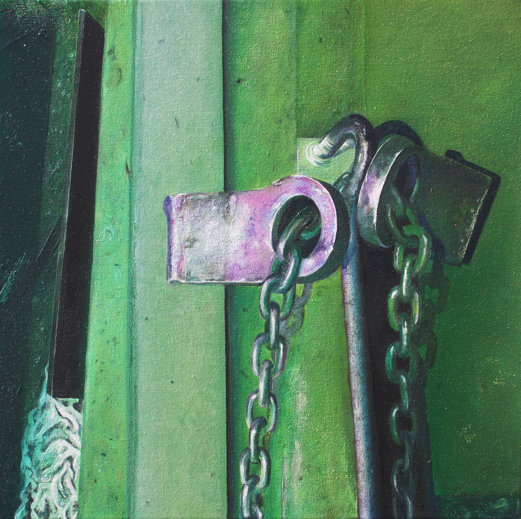 Diese Arbeit zeigt ein Detail einer vor sich hinrostenden Maschine, welches im Ausschnitt seltsame Formen zeigt. Mit den Mitteln der Malerei arbeite ich die Formen, Flächen, Farben und Strukturen so heraus, dass der Betrachter die Möglichkeit hat, eine völlig neue Ästhetik zu entdecken.
