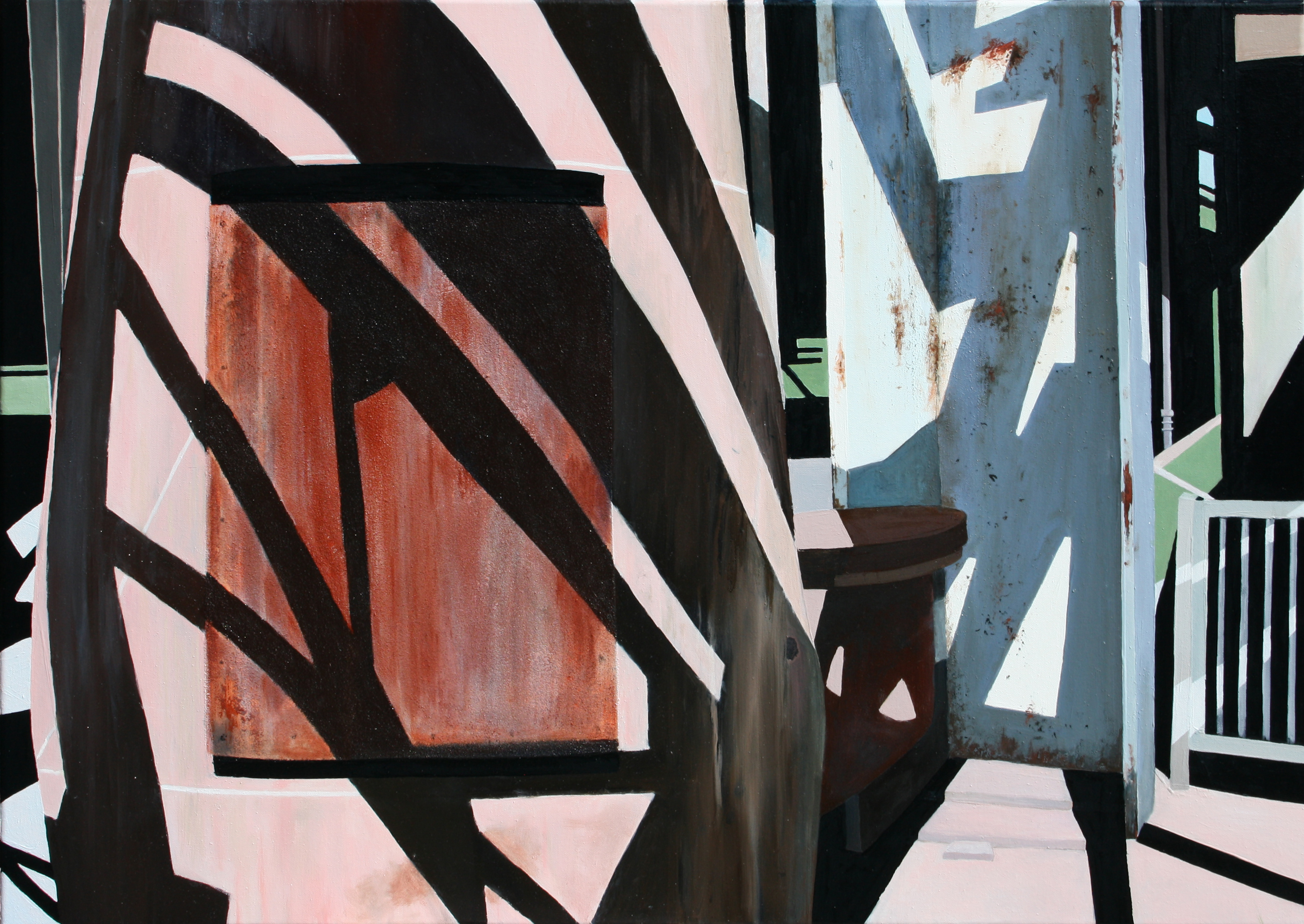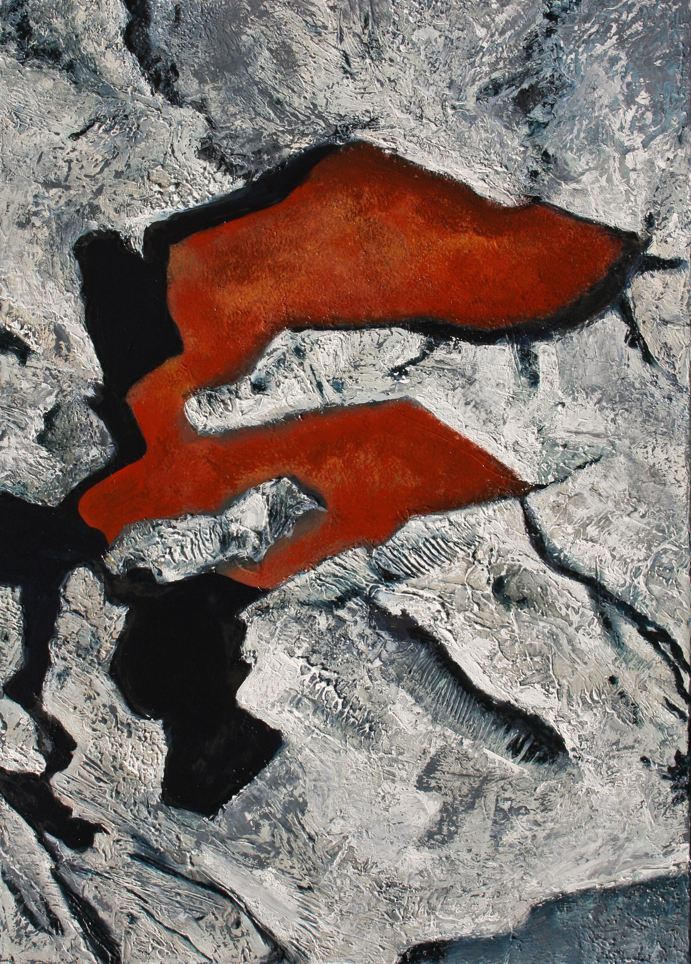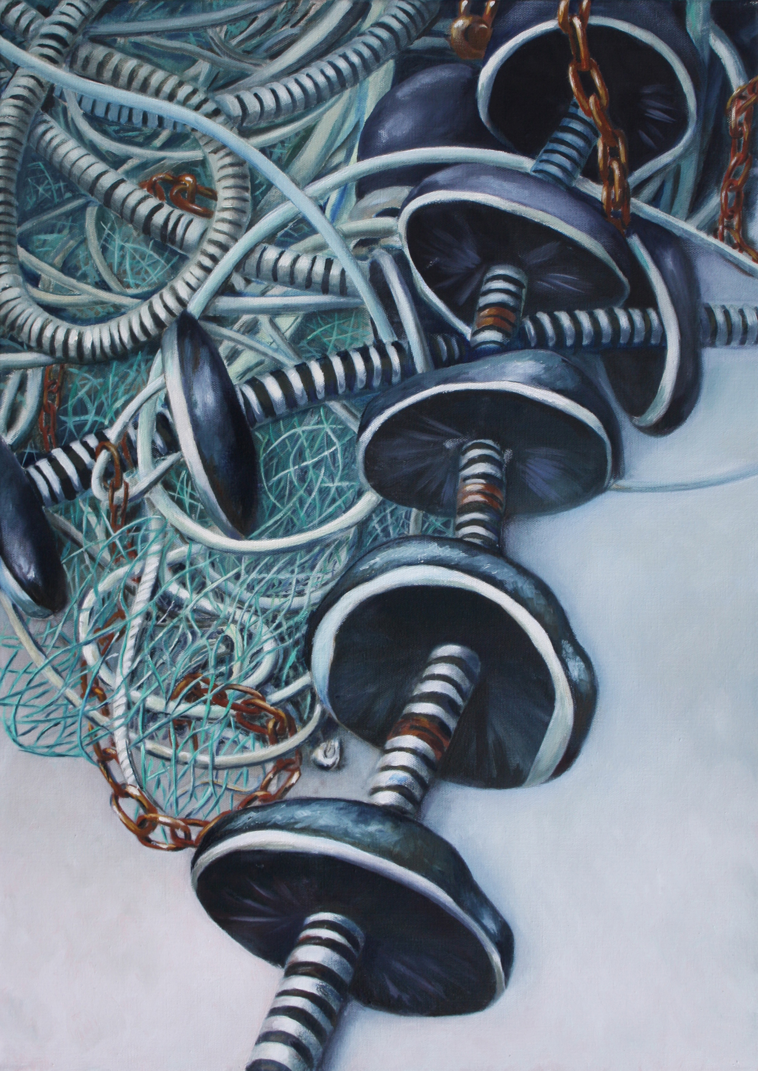 Diese Arbeit zeigt ein Detail einer vor sich hinrostenden Maschine, welches im Ausschnitt seltsame Formen zeigt. Mit den Mitteln der Malerei arbeite ich die Formen, Flächen, Farben und Strukturen so heraus, dass der Betrachter die Möglichkeit hat, eine völlig neue Ästhetik zu entdecken.