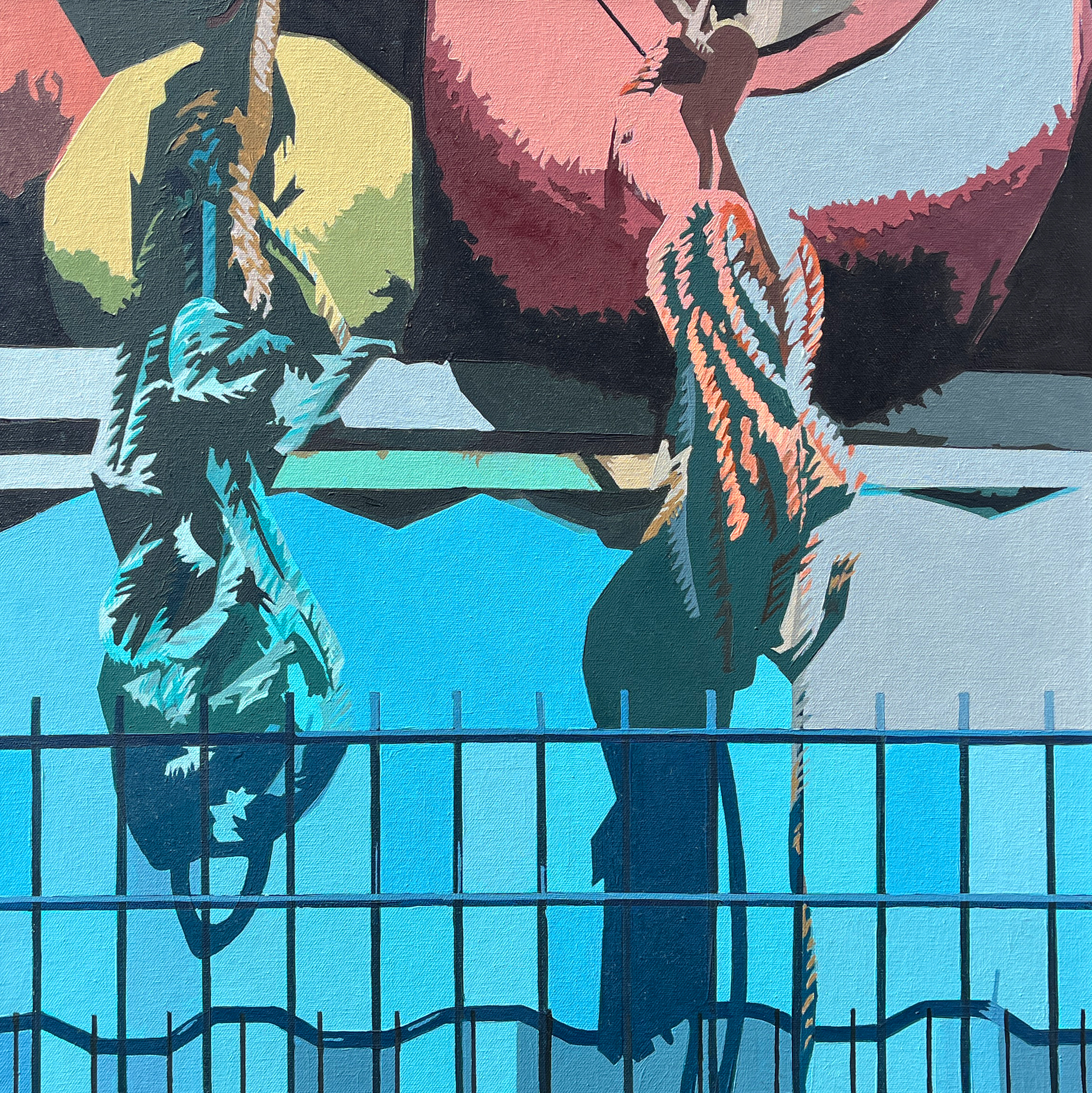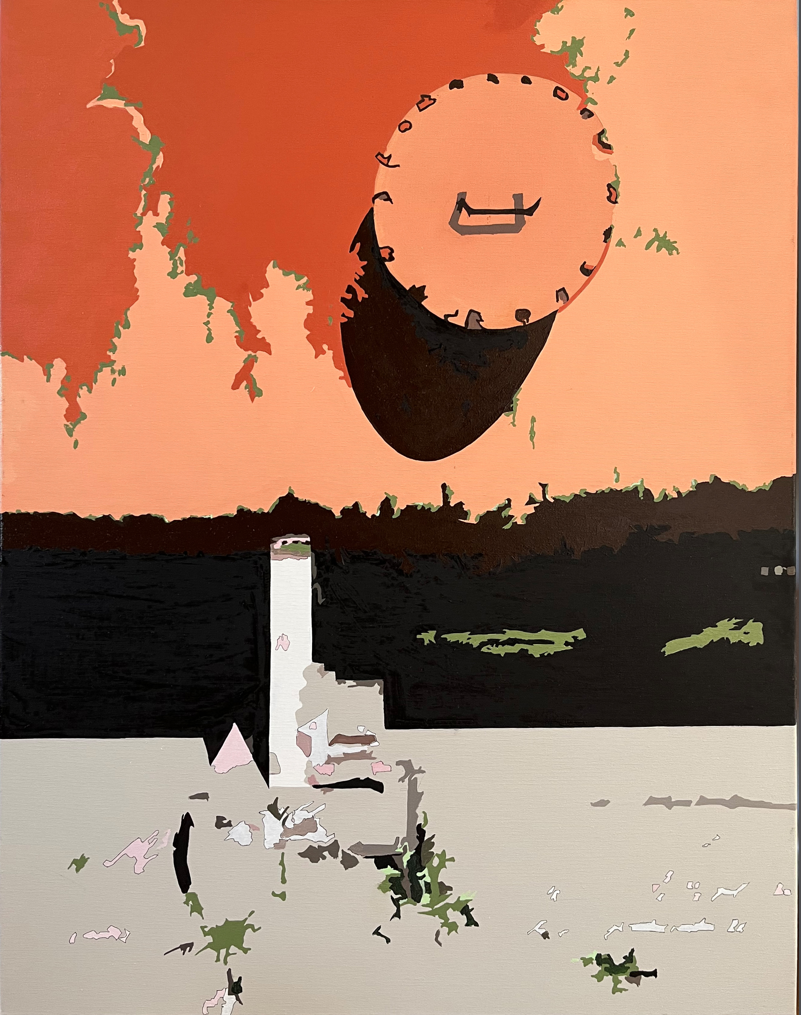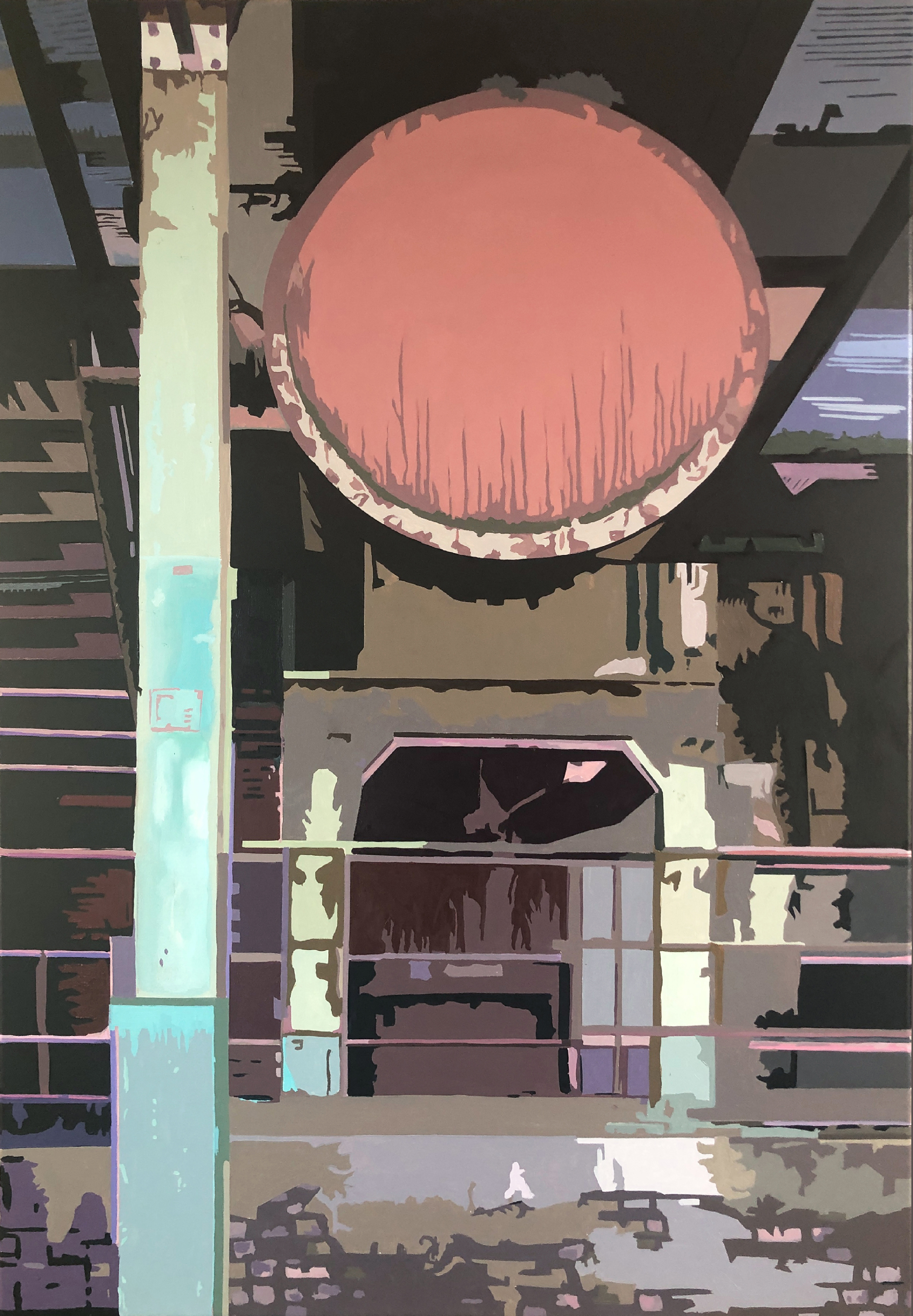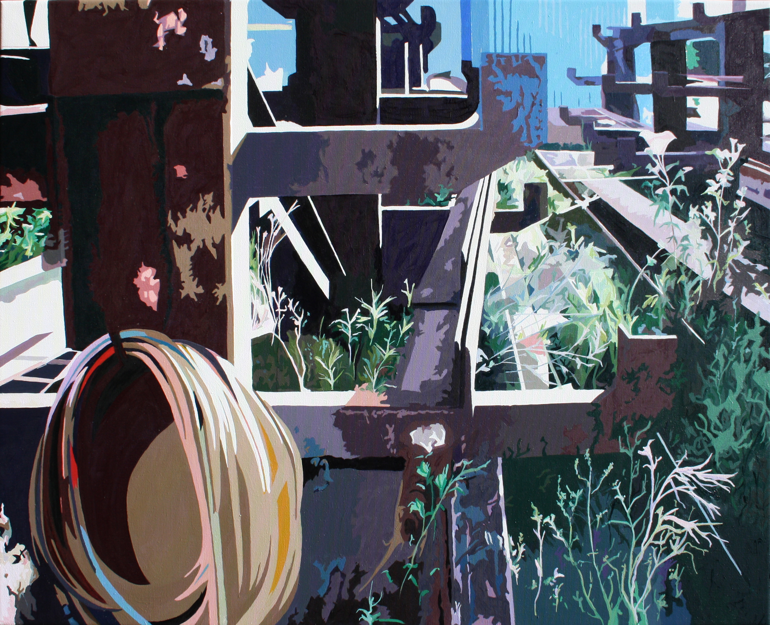 Diese Arbeit zeigt ein Detail einer vor sich hinrostenden Maschine, welches im Ausschnitt seltsame Formen zeigt. Mit den Mitteln der Malerei arbeite ich die Formen, Flächen, Farben und Strukturen so heraus, dass der Betrachter die Möglichkeit hat, eine völlig neue Ästhetik zu entdecken.
