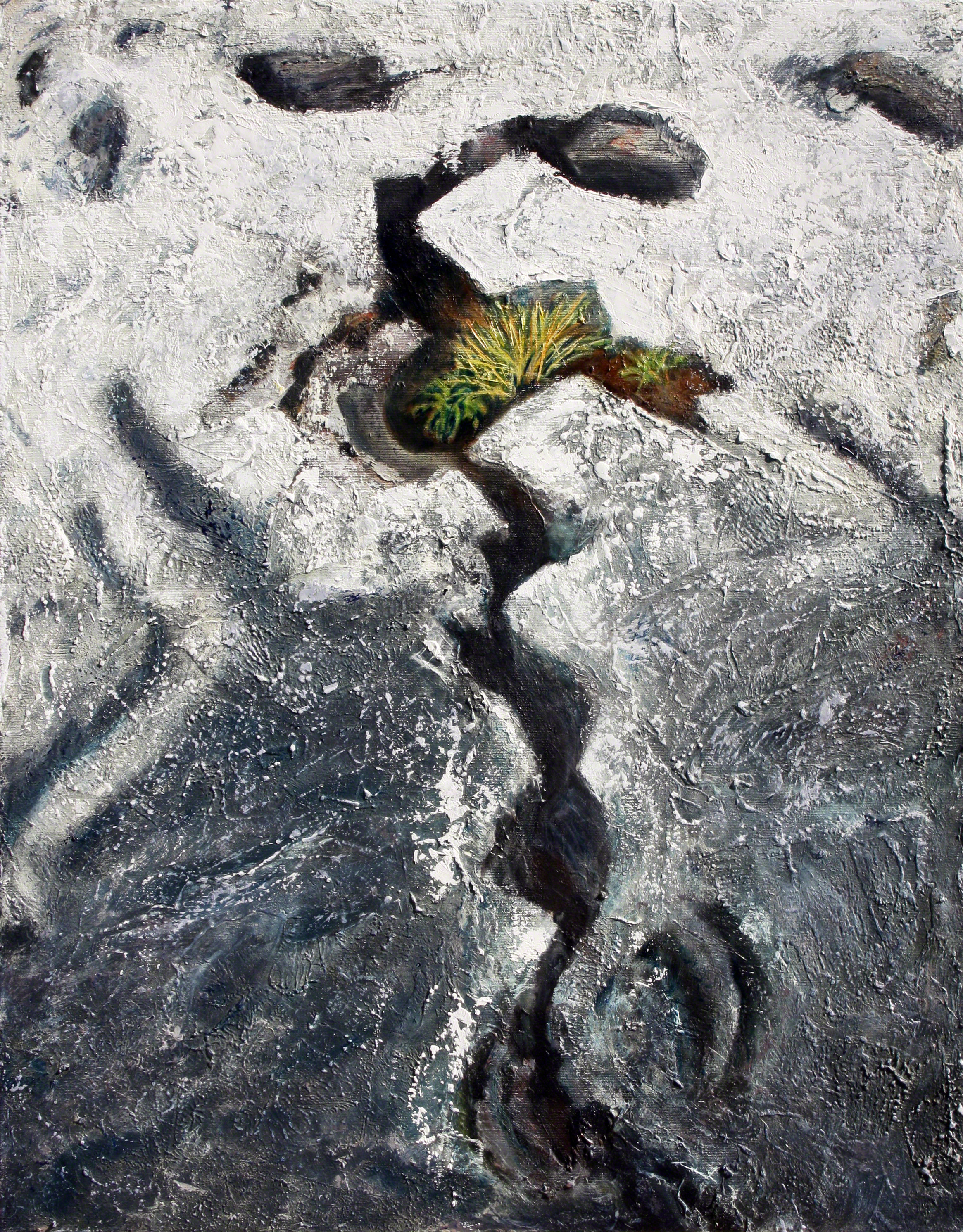 Acrylfarbe auf Strukturpaste auf Leinwand