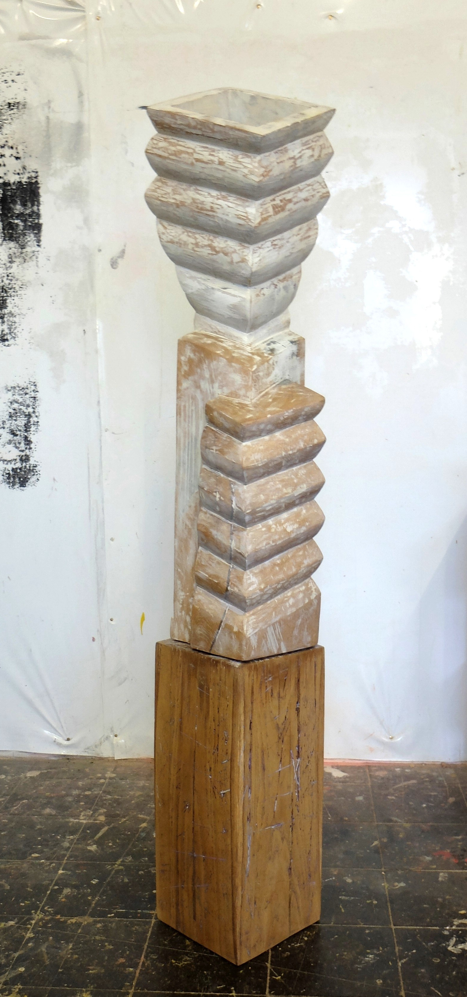 »As a sculptor, space is his dimension in which he acts, wood his material of expression. His sculptures seem to be abstract and yet have a high relation to reality, as they always sound out the dimensionality of space and move in the tension between lightness and gravity. They deal with the limits of physics and the infinity of mind and emotion. And so he always seeks improbable forms, massive and yet fragile, held together by an inner stability, which open up space in unusual ways, exploring three-dimensionality and performing a dance in space in the most beautiful way.«