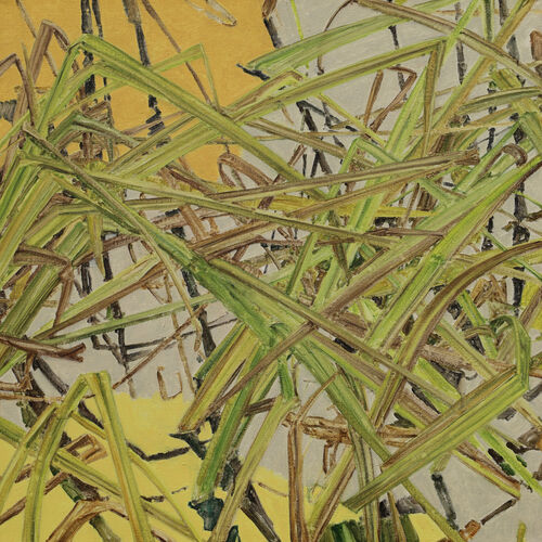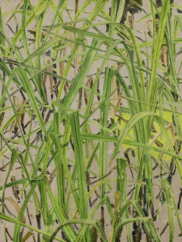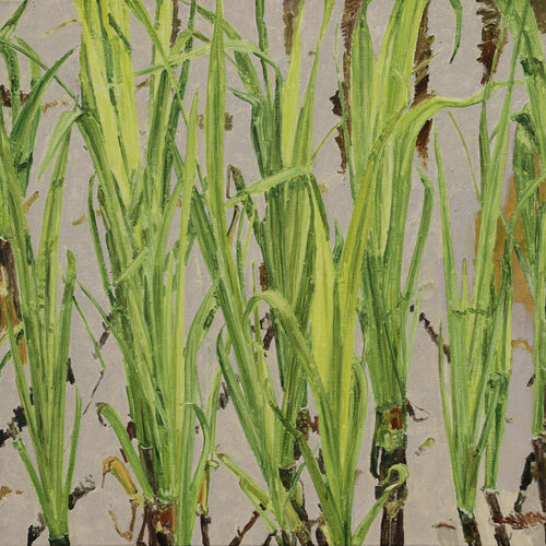 Quiet, reduced, contemplative. This is how the cornfields, grasses and snow-covered landscapes appear in Renate Gaisser’s paintings. Oasis of calm, as if out of time, in a strict reduction that leaves space for the viewer, does not impose, but invites. The works are created plein air, Gaisser leaves her workshop to paint, goes outside and turns nature into her studio.