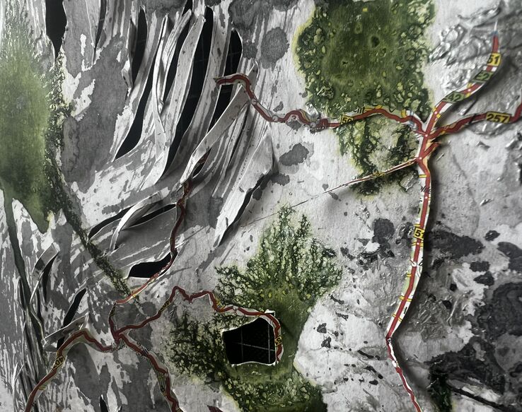 Es geht in meiner Arbeit um das Sichtbarmachen von verschiedenen Ebenen und Zusammenhängen. Strukturen und Erscheinungen aus der Natur mischen sich mit Beobachtungen und einem eigenen Blick auf das Vorhandene. Ich experimentiere viel mit dem Zusammenspiel unterschiedlicher Techniken und Formaten – mit installativen Zeichnungen, überzeichneten Drucken, Collagen und dreidimensionalen Papierschnitten.