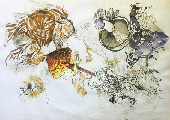Monotypie, Aquarell, Fineliner 2024