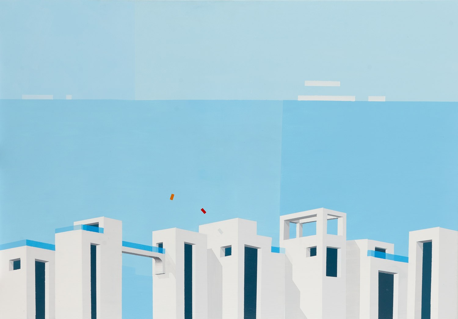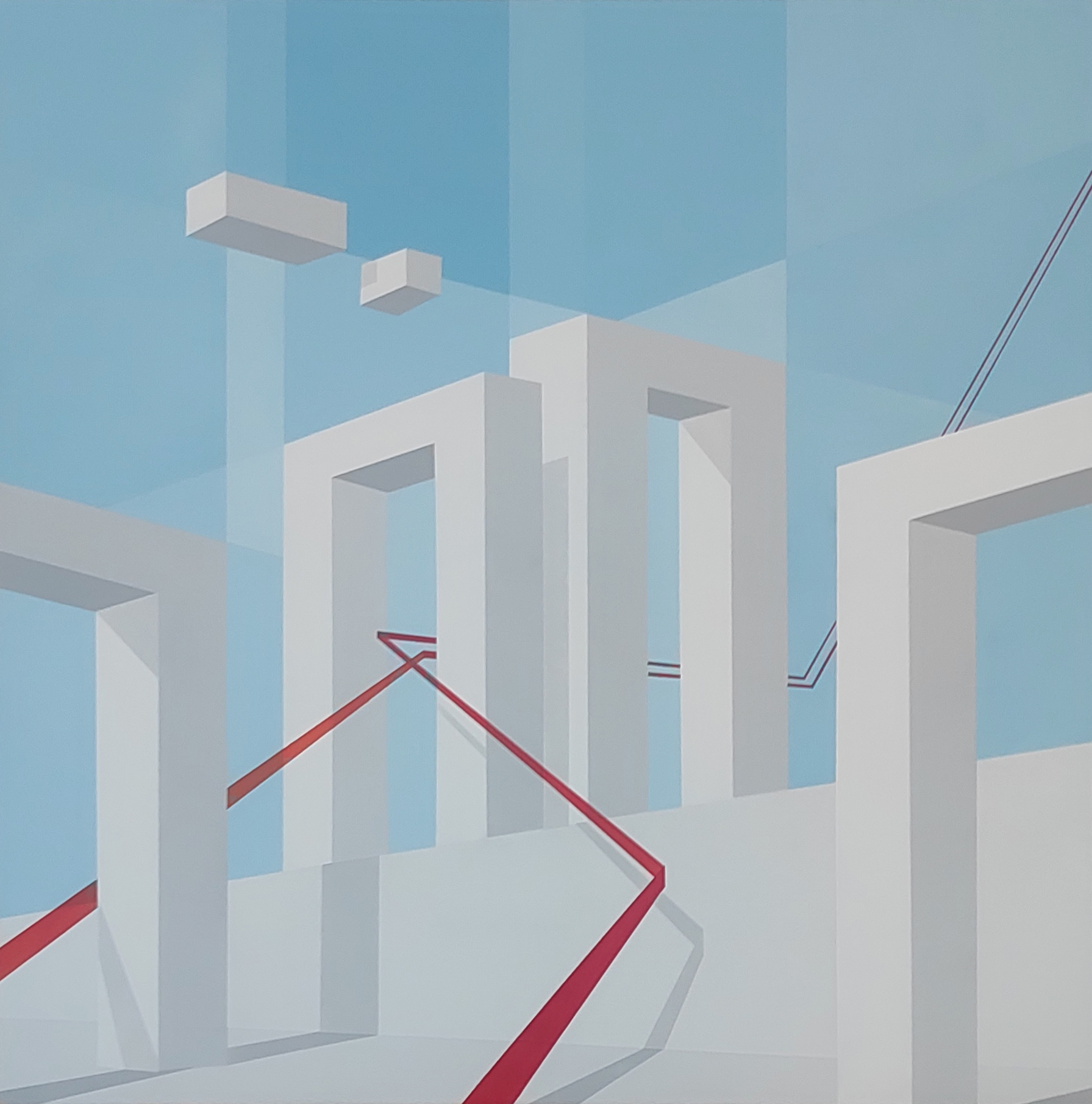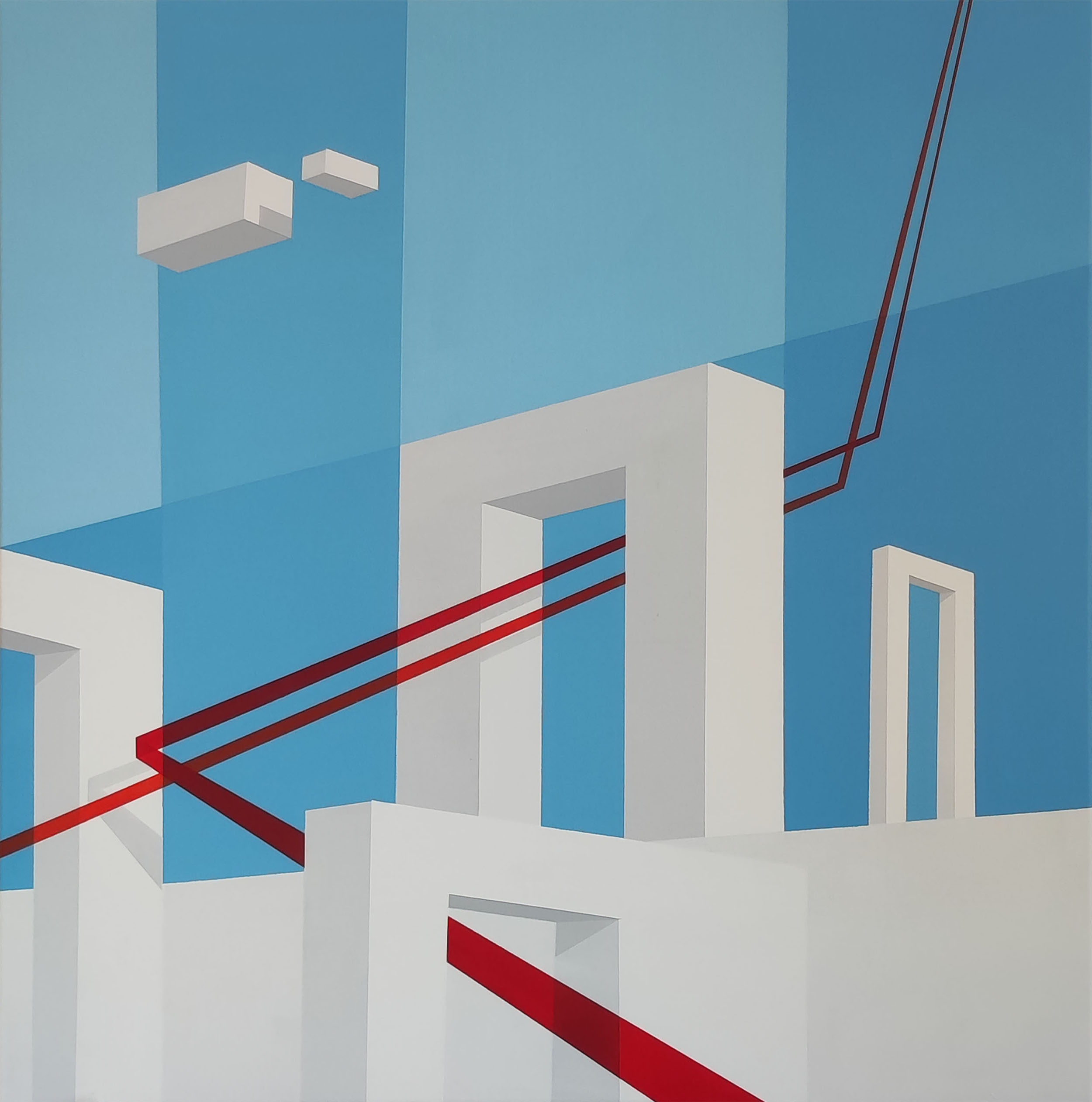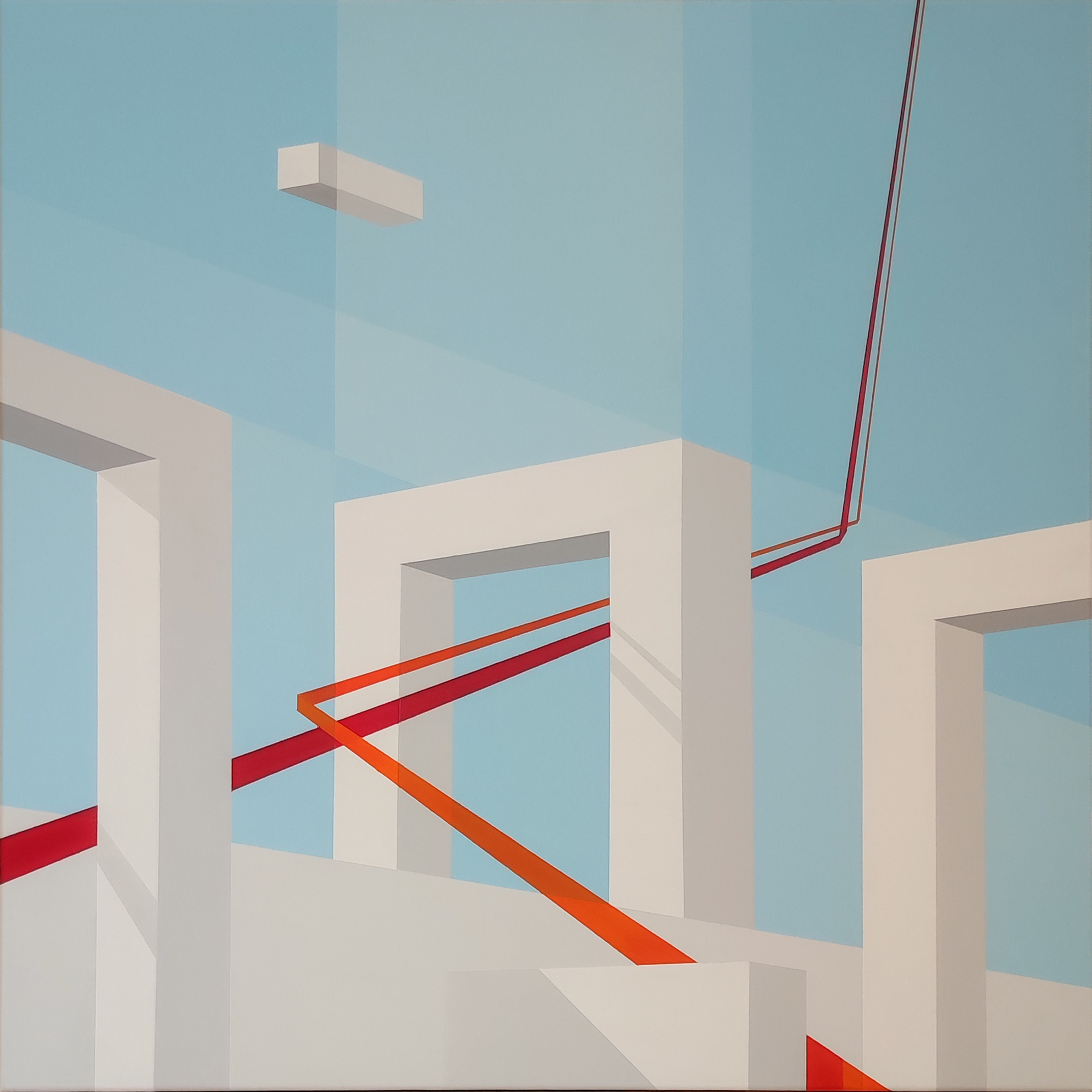 Step into surreal world of geometric precision and floating forms. Explore the harmony between minimal architecture and abstract space, guided by bold rays that leads us through a maze of open structures and sky. A meditation on space, perspective and the journey forward.