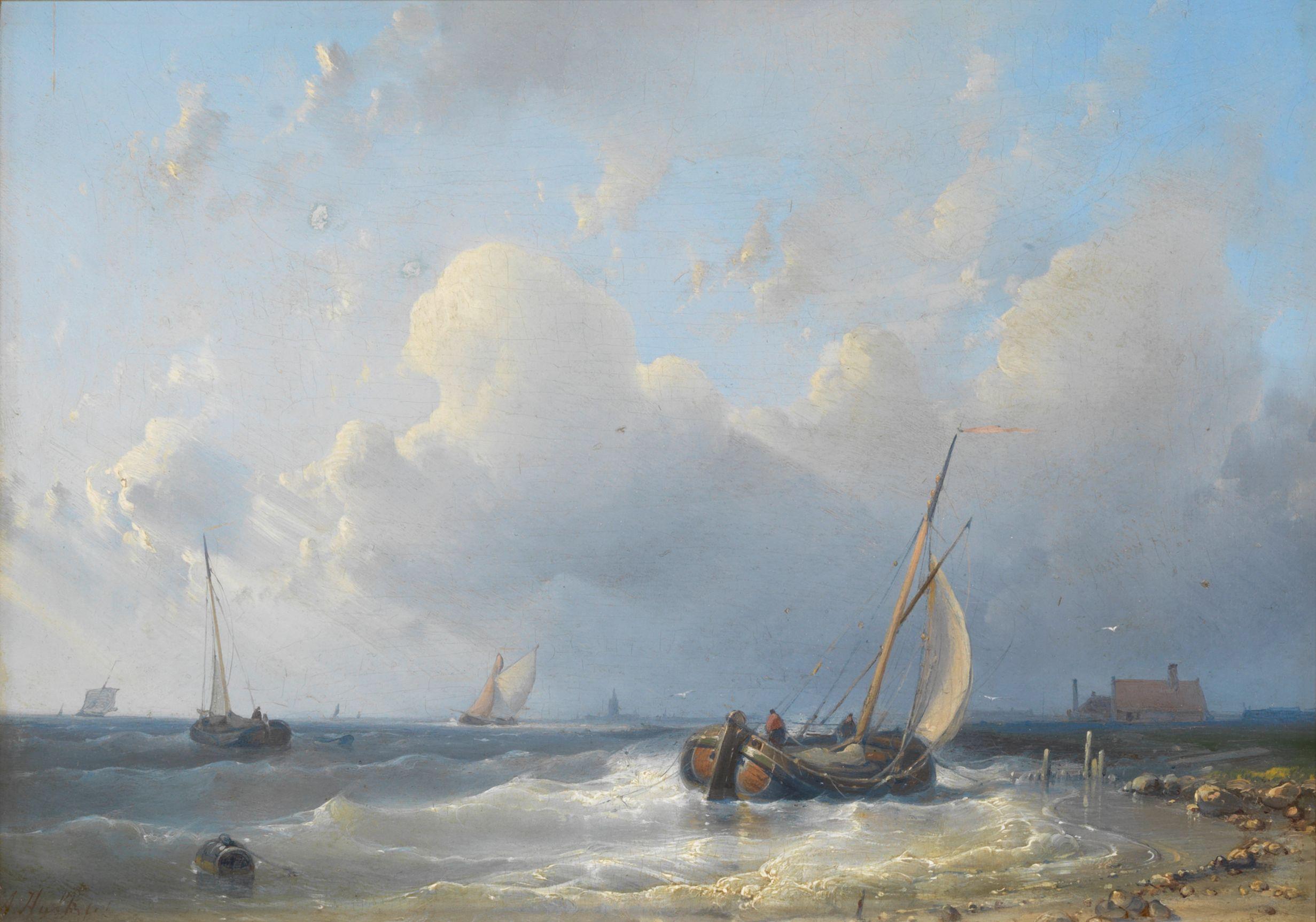 The work A fresh breeze by Abraham Hulk was auctioned at Bonhams in London in April last year. The price achieved of GBP 3,825.00 (€ 4,561.18) was within expectations - the estimate range had previously been set by the auction house as GBP 3,000.00 – 5,000.00. Of course, this price has nothing to do with the top prices that other works by Abraham Hulk achieve. The highest price we have observed so far was reached by the work Dutch Barges In A Calm in October 2007 with an auction result of EUR 50,650.00.
