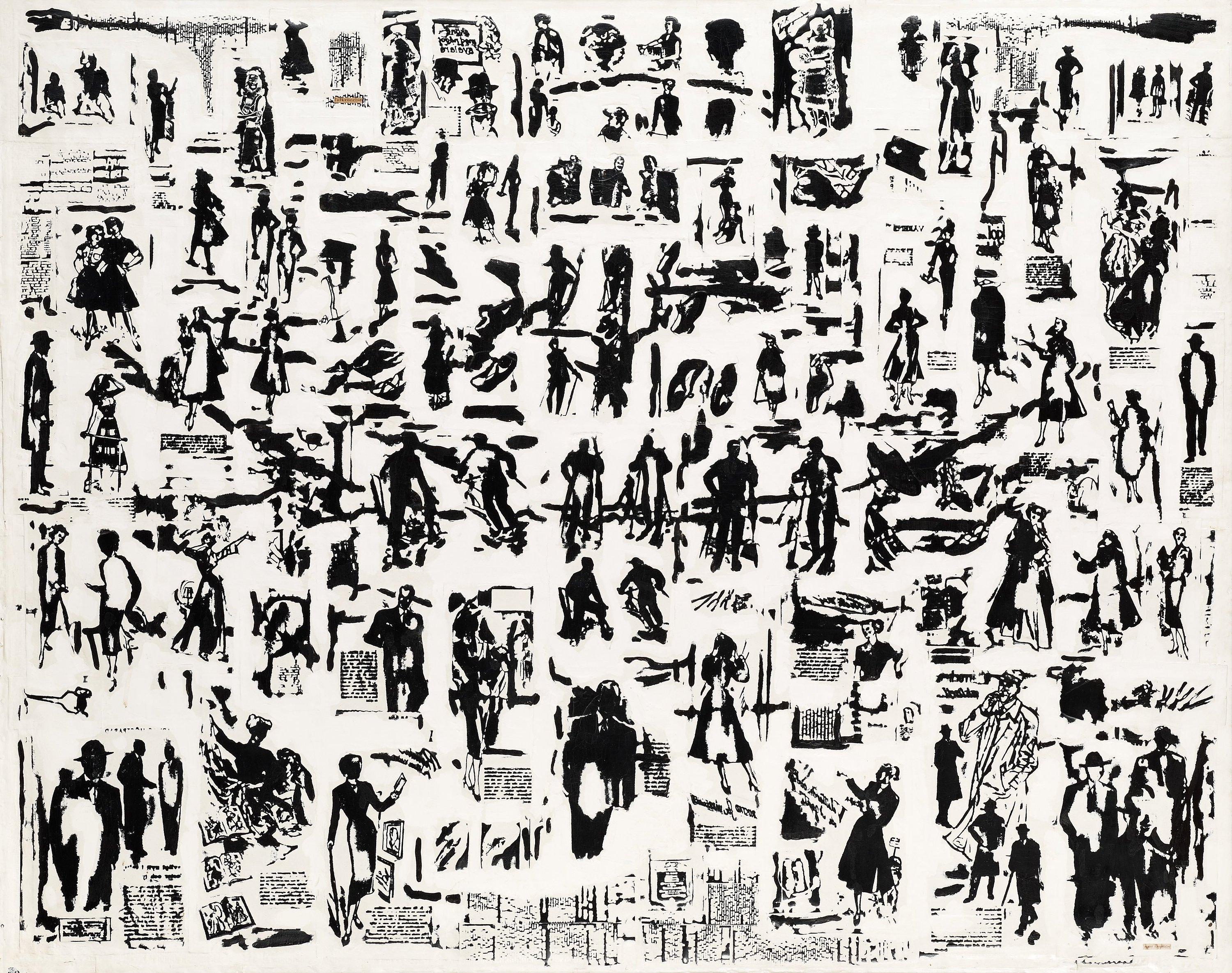 Signed Albert Johansson and dated 1963 on verso. Mixed media and collage laid down on panel 122 x 152 cm.