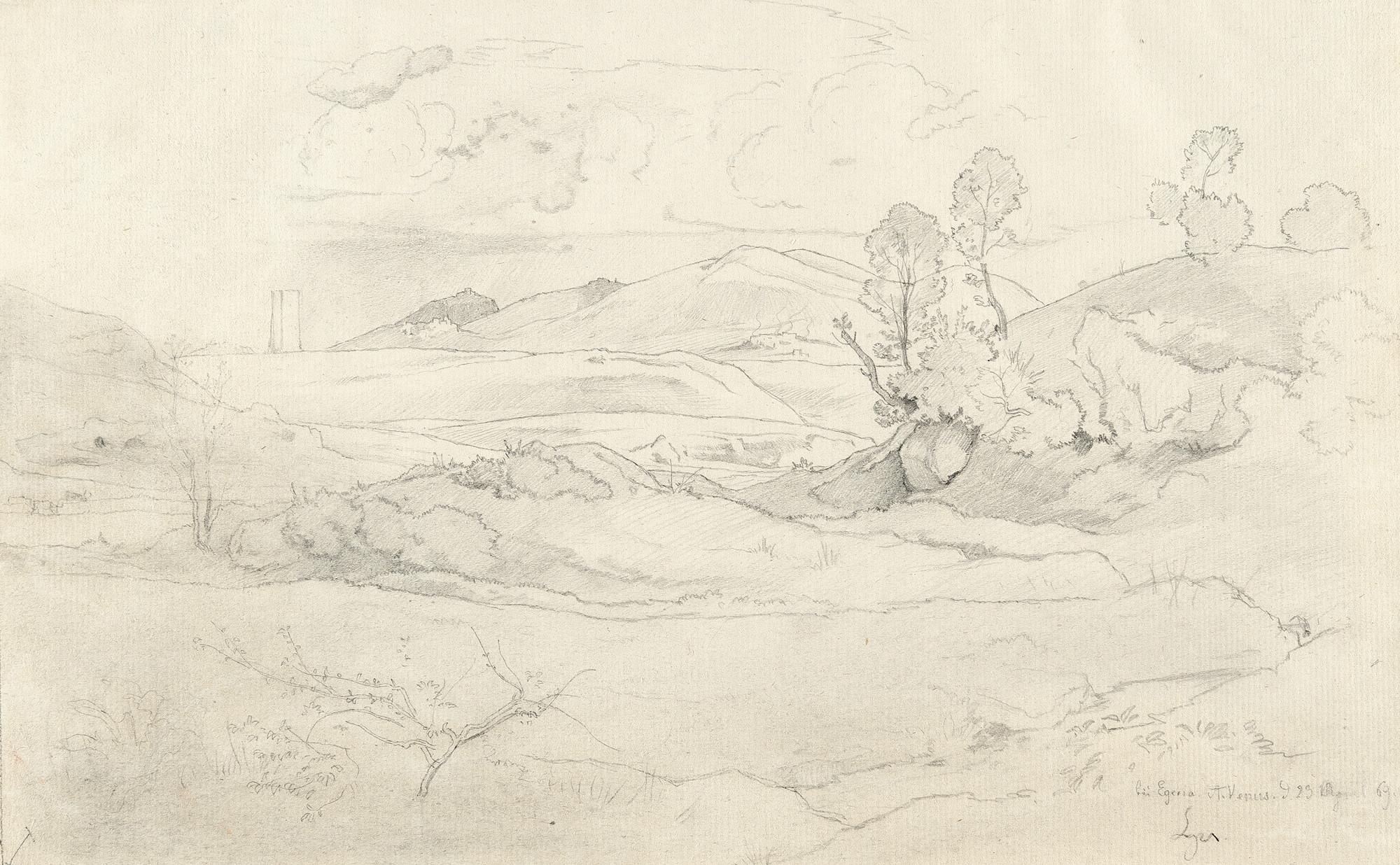 Bleistift auf Bütten. (18)69. 17,3 x 27,4 cm. Signiert, datiert und betitelt unten rechts.
