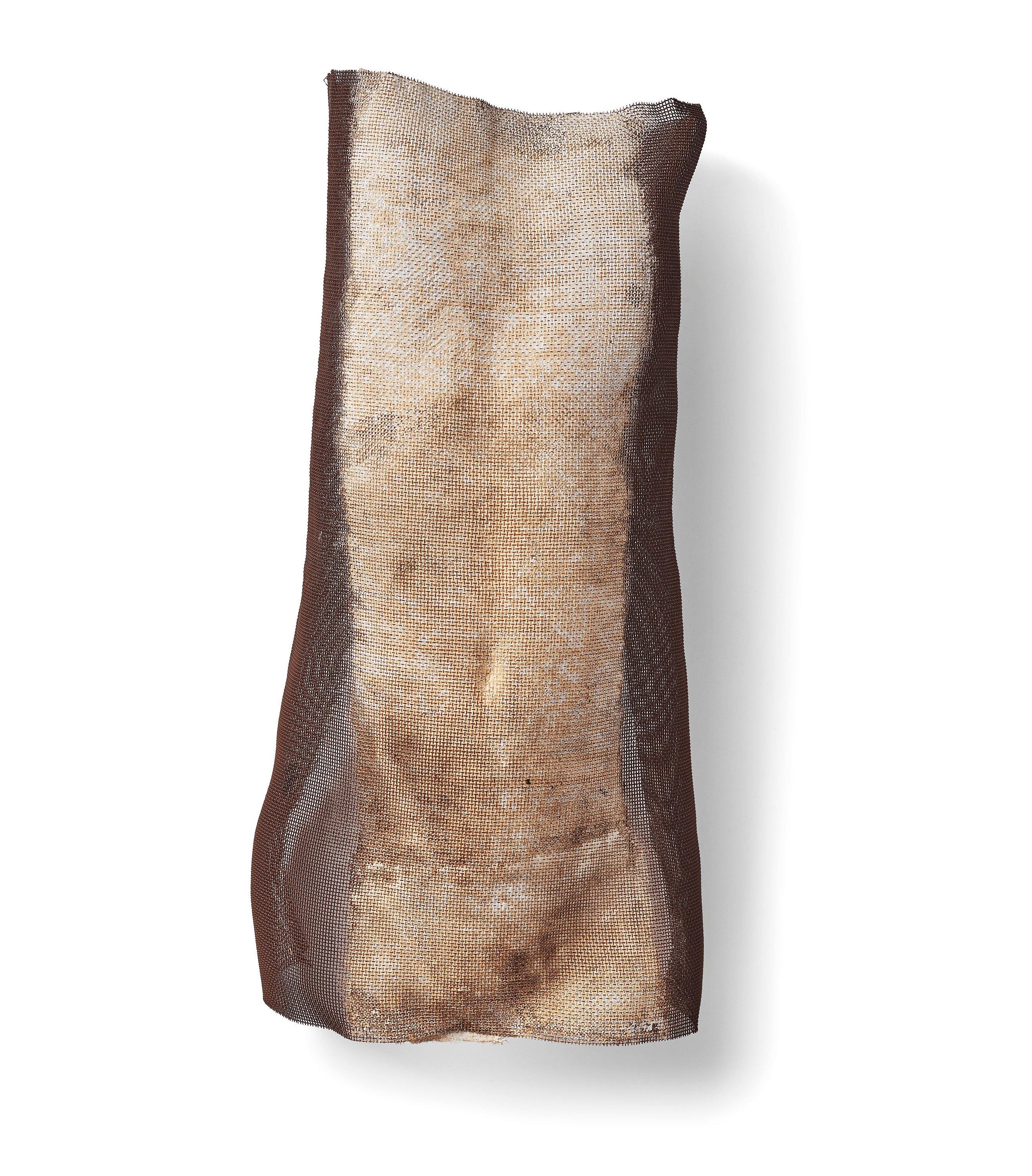 Iron net and painted plaster. Height 57 cm, width 25 cm.