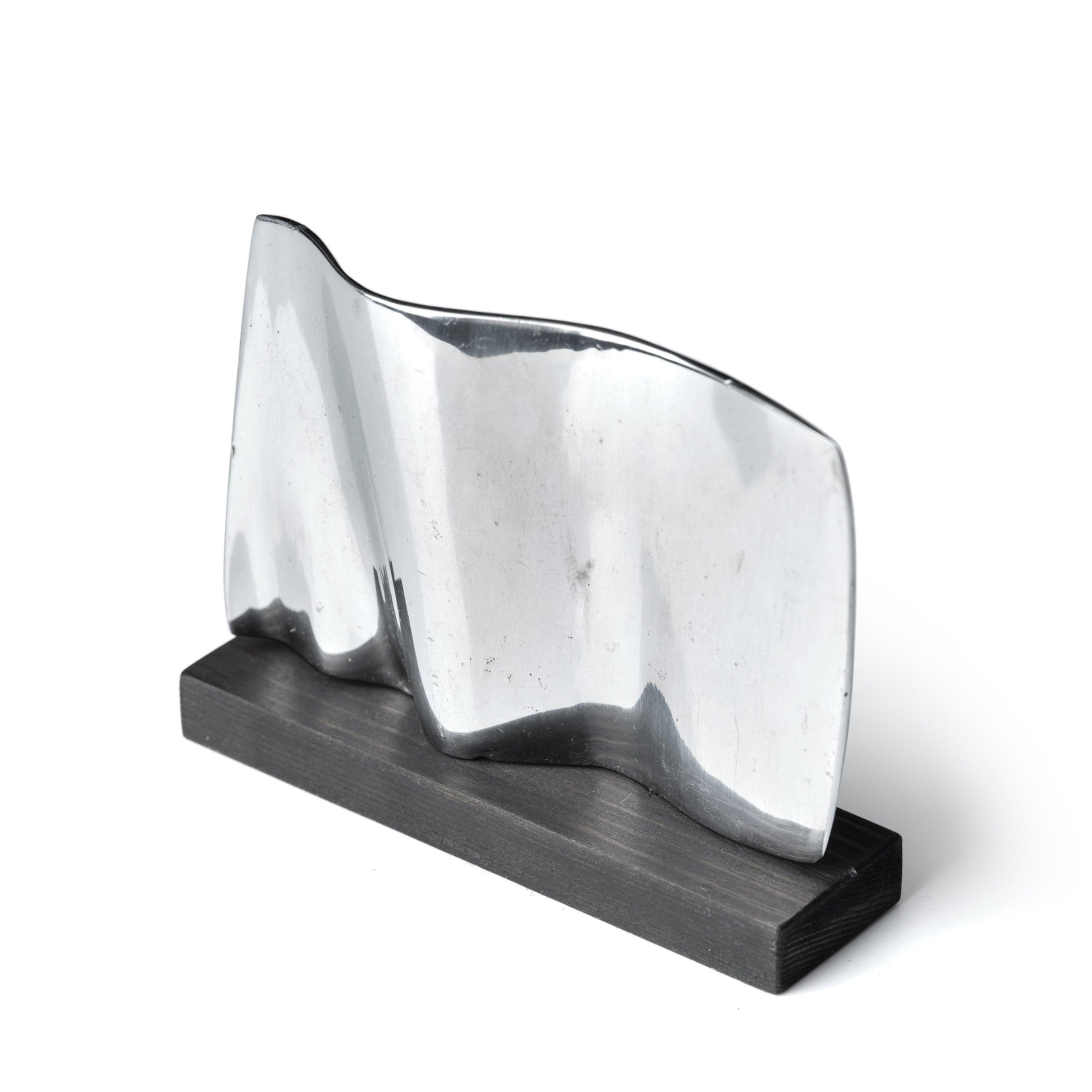 Signed BB and dated -67. Aluminum, mounted on wooden base. Lenght 10.5 cm. Height including base 8.5 cm.