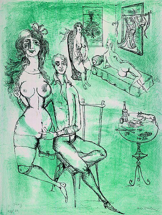 This artwork by Bele Bachem achieved an unexpectedly high price at Ketterer in May 2002. In the Moderne und Gegenwart auction, the work Sanft bis zur letzten Rasur (I. Fassung) sold for EUR 184.00 - well above the estimate of EUR 100.00. Of course, this price has nothing to do with the top prices that other works by Bele Bachem achieve. The highest price we have observed so far was reached by the work Tafel der Lebensalter. in December 2010 with an auction result of EUR 8,125.00.