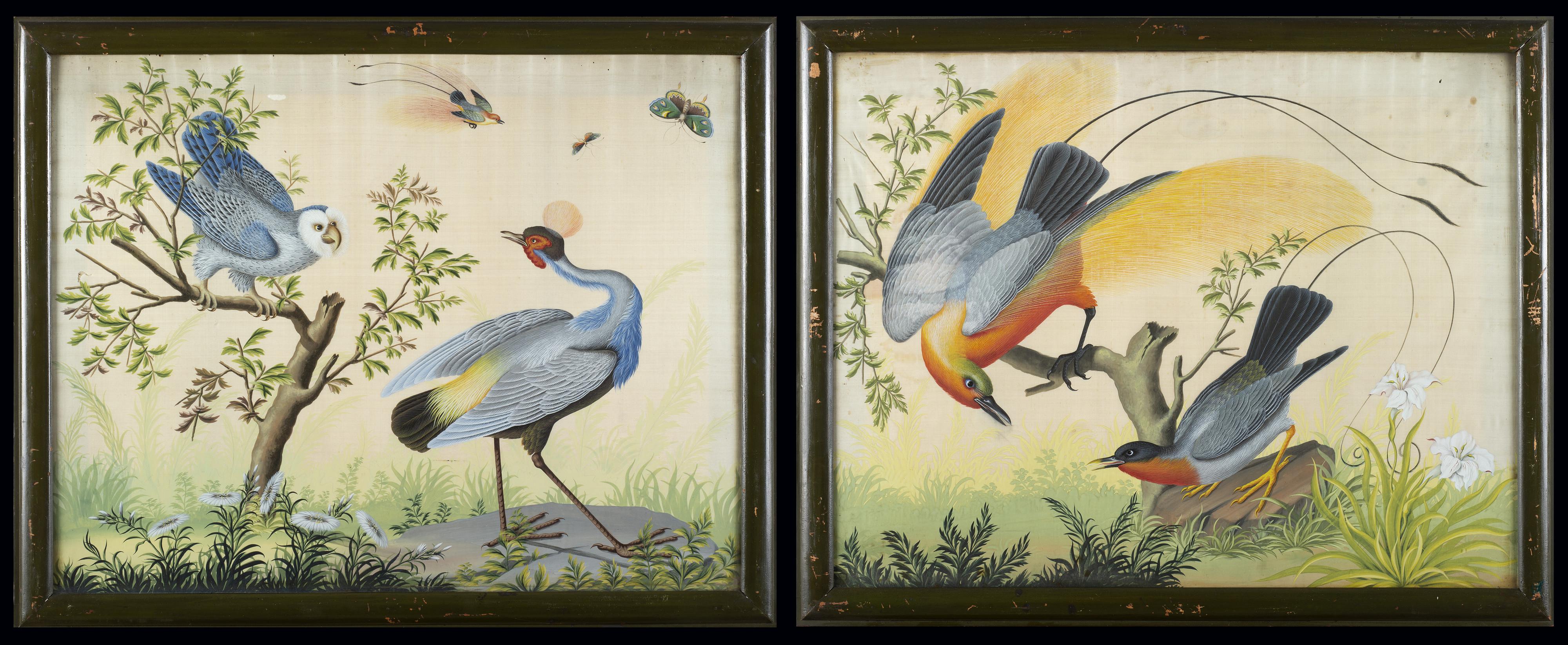 coppia di dipinti su seta (cm 53x69) In cornice (difetti)