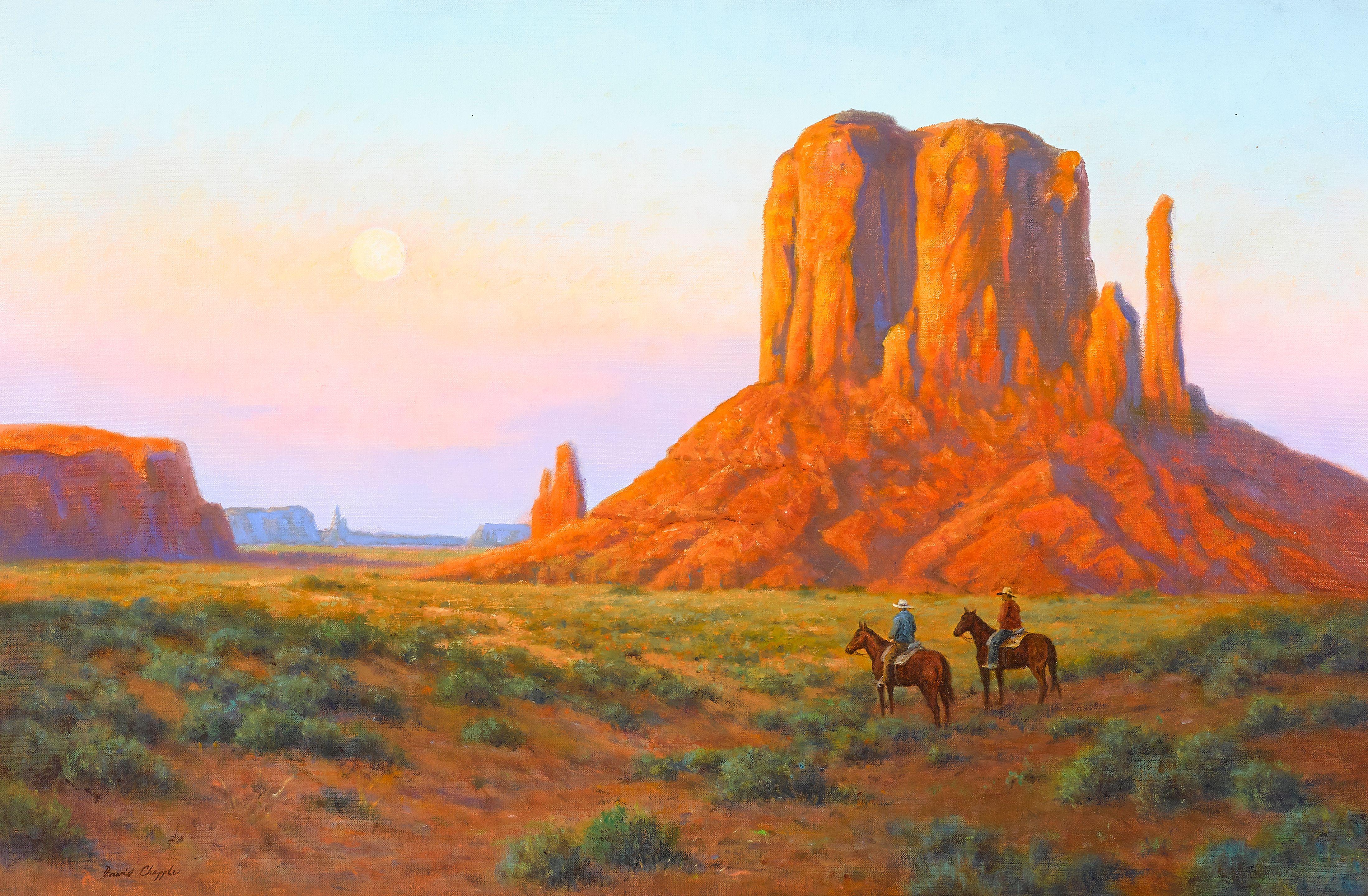 Die Arbeit Navajo Moon von David Chapple kam im April letzten Jahres bei Bonhams in Los Angeles zur Auktion. Sie erzielte dabei einen Preis von USD 10.200,00 (€ 9.680,17) und übertraf damit das obere Ende der Schätzpreisspanne um 46%. Andere Arbeiten von David Chapple haben noch höhere Preise erzielt - wir haben das bisher höchste Auktionsergebnis von USD 12.750,00 (€ 11.548,91) im April diesen Jahres für die Arbeit Sunlit Cove beobachtet.