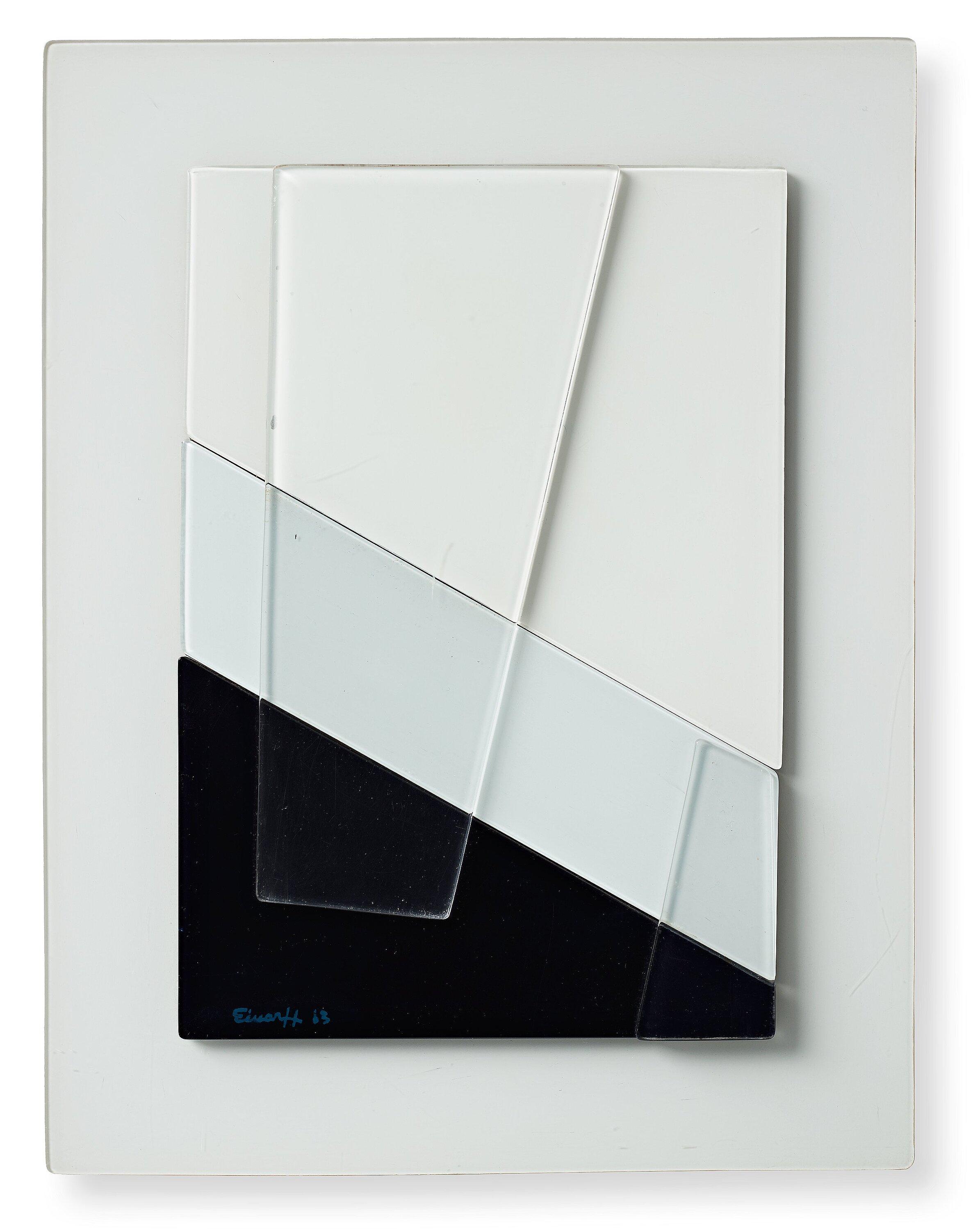 Signed Einar H. and dated -63. Assemblage with plexiglass mounted on panel, 45 x 35 cm.