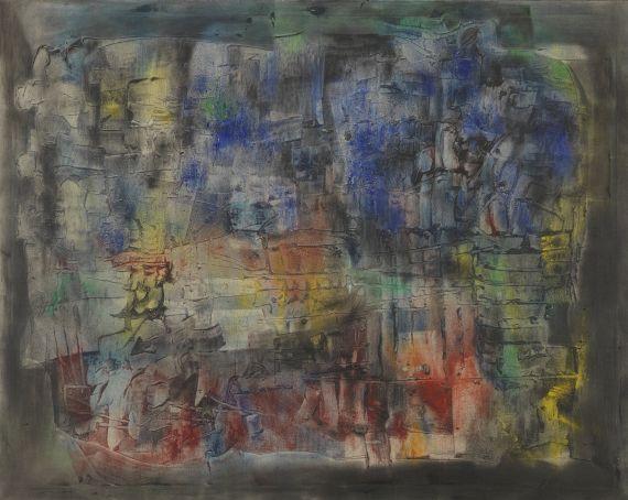 Rechts unten signiert. Verso nochmals signiert sowie datiert, betitelt und bezeichnet sowie mit dem Richtungspfeil. 115,5 x 144,5 cm (45,4 x 56,8 in). [KP].