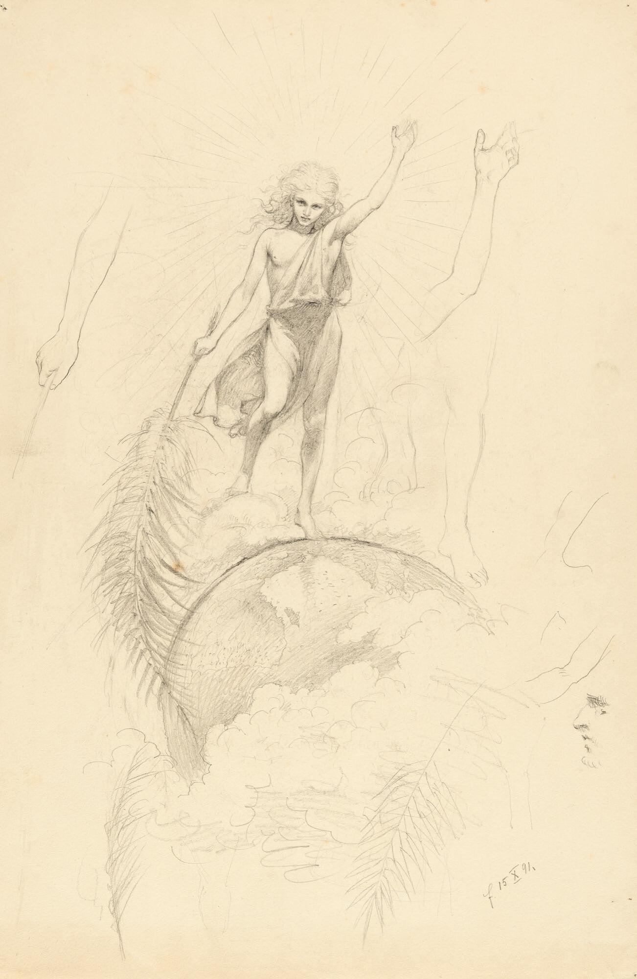 Bleistift auf Velin. (18)91. 38,3 x 25,1 cm und 31,1 x 19,3 cm. Unten rechts monogrammiert und datiert. Beiliegt: Holzstich von Georg Meisenbach, erschienen in: Sphinx. Monatsschrift für Seelen- und Geistesleben, November 1891.