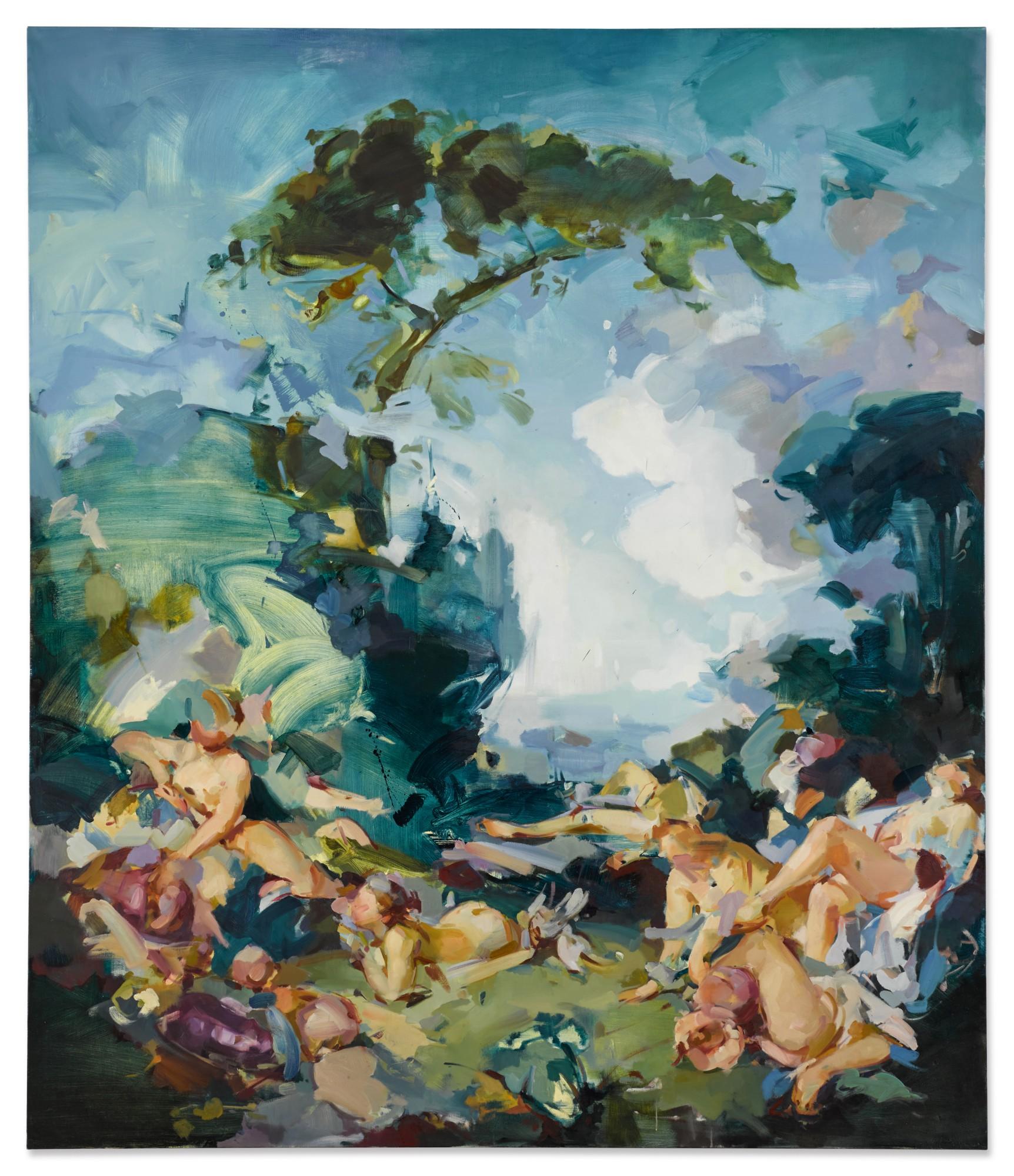 Als die Arbeit Warm, Wet ‘N’ Wild von Flora Yukhnovich im März letzten Jahres bei Sothebys in London versteigert wurde, übertraf das Ergebnis die Erwartungen um ein Vielfaches. Der obere Schätzpreis war mit – rückwirkend betrachtet recht bescheidenen – GBP 200.000,00 angesetzt, der tatsächlich erzielte Preis hingegen war mit GBP 2.697.000,00 (€ 3.197.597,04) mehr als 13-mal so hoch. Dieses hohe Ergebnis macht Warm, Wet ‘N’ Wild zu dem teuersten Kunstwerk von Flora Yukhnovich, das wir bisher bei Auktionen beobachtet haben.