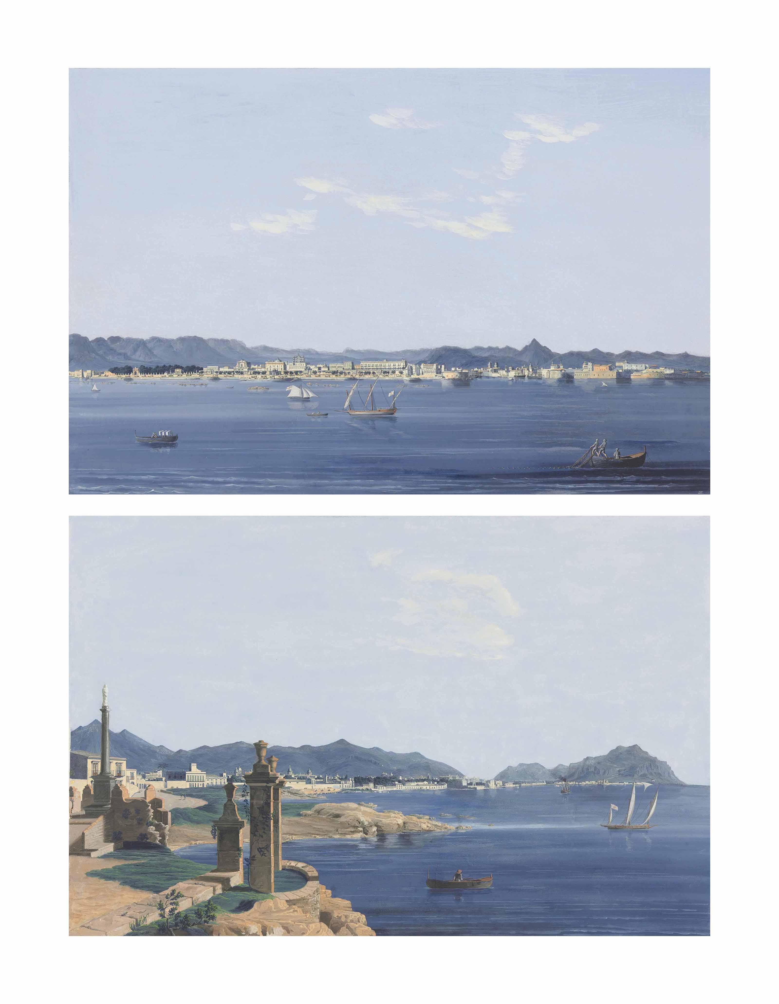 signed with initials 'FZ.' and 'Francesco Zerilli Dipinse.' and inscribed ' Veduta di Palermo Presa da Romagnolo.' (i) and 'Vedutta della Marina di Palermo.' (ii)