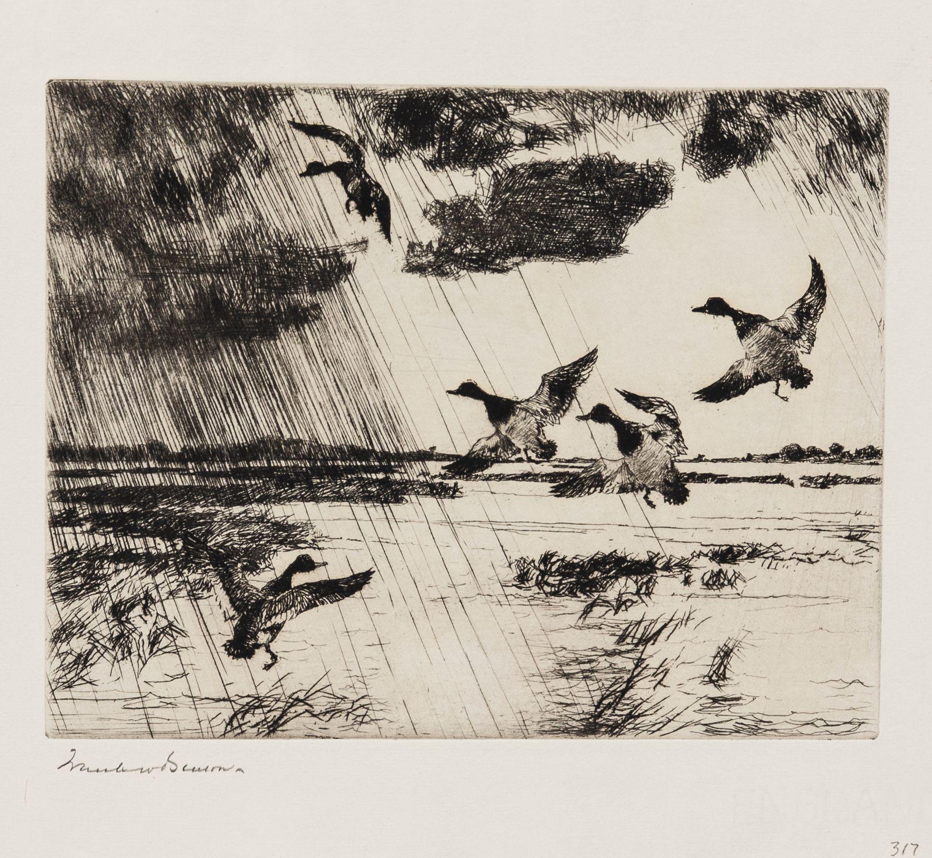 Dieses Kunstwerk von Frank Weston Benson erzielte im September letzten Jahres bei Bonhams in Skinner Marlborough, Massachusetts einen unerwartet hohen Preis. In der Auktion Prints & Photographs wurde die Arbeit Rain Squall für USD 612,00 (€ 625,57) versteigert – und damit weit über dem oberen Schätzpreis von USD 300,00. Dieser Preis hat freilich nichts mit den Spitzenpreisen zu tun, die andere Arbeiten von Frank Weston Benson erzielen. Den höchsten von uns bisher beobachteten Preis erreichte die Arbeit The Reader im November 2016 mit einem Auktionsergebnis von USD 2.887.500,00 (€ 2.729.722,06).