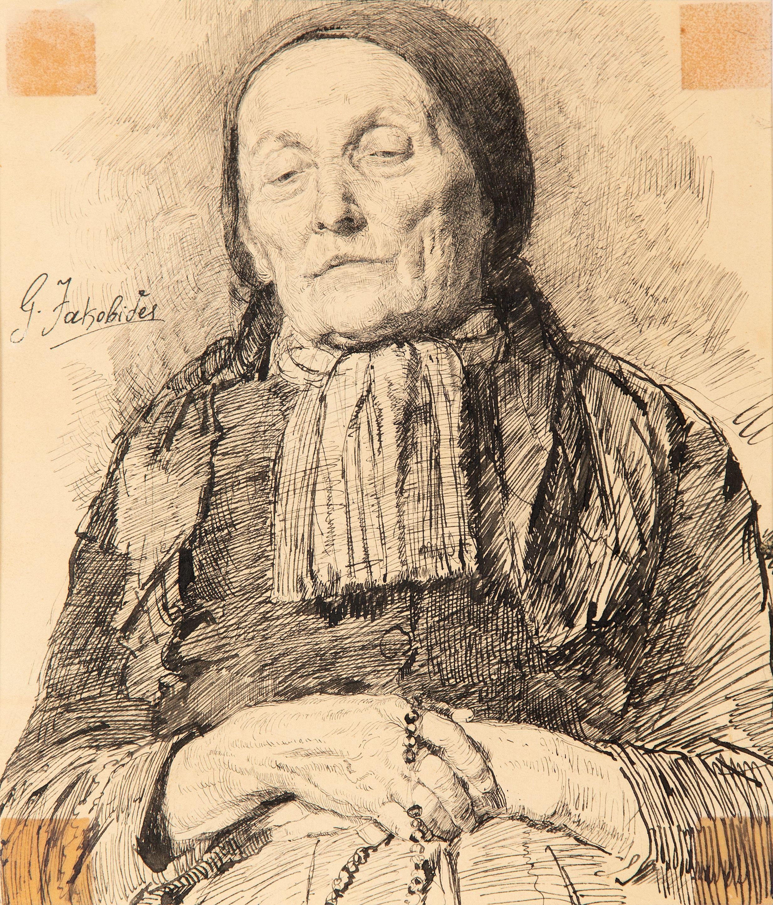 The work Une vieille femme tenant une corde nouée by Georgios Jakobides was worth EUR 10,837.50 to a buyer in November 2021. This price was achieved in the auction The Greek Sale at Bonhams in Paris and exceeded the previously set upper estimate of EUR 3,000.00 many times over. Of course, this price has nothing to do with the top prices that other works by Georgios Jakobides achieve. The highest price we have observed so far was reached by the work Greeg Randpa'S New Pipe in April 2008 with an auction result of GBP 535,700.00 (€ 682,941.80).