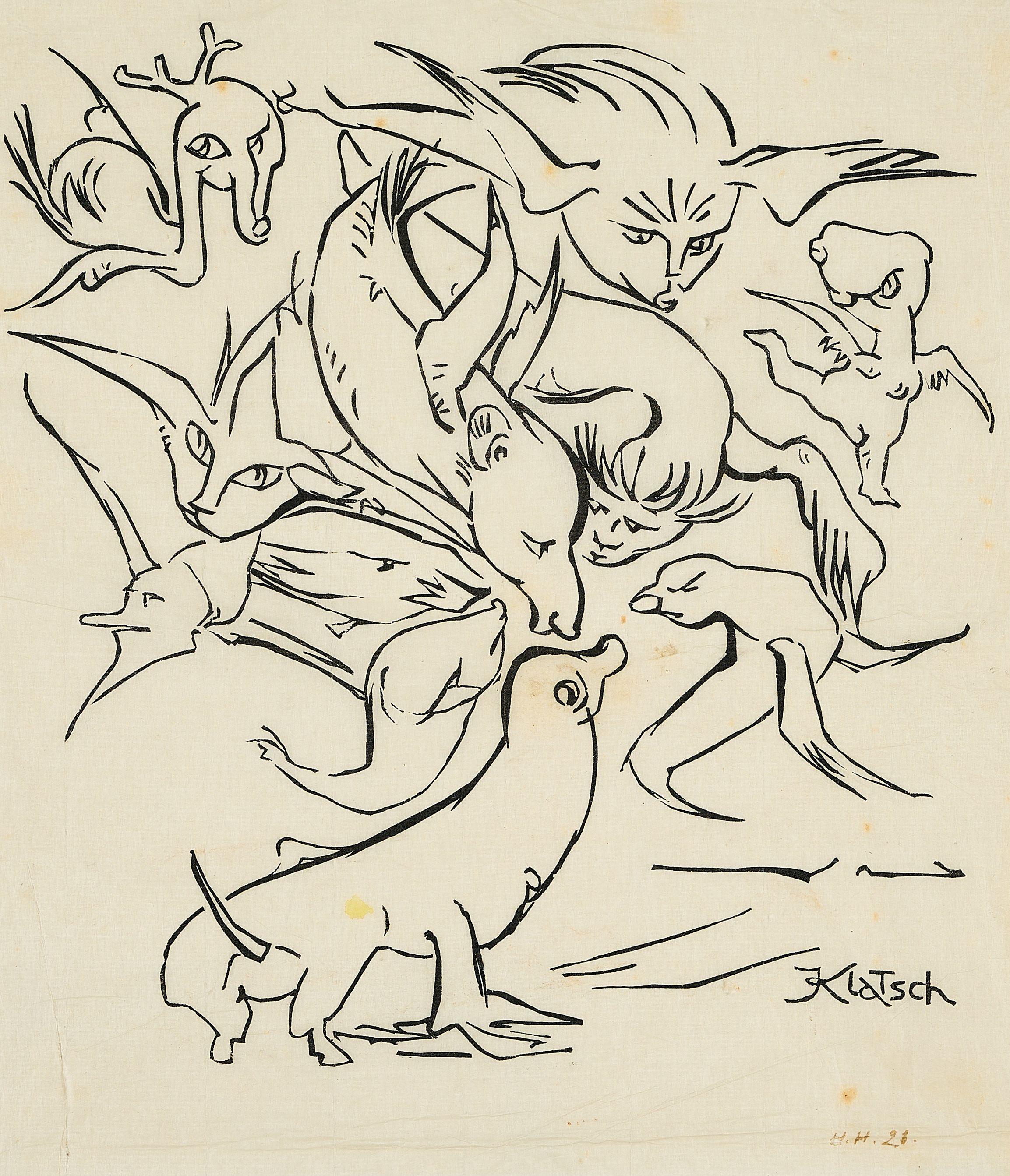 Technik: Linolschnitt auf dünnem Japan.
