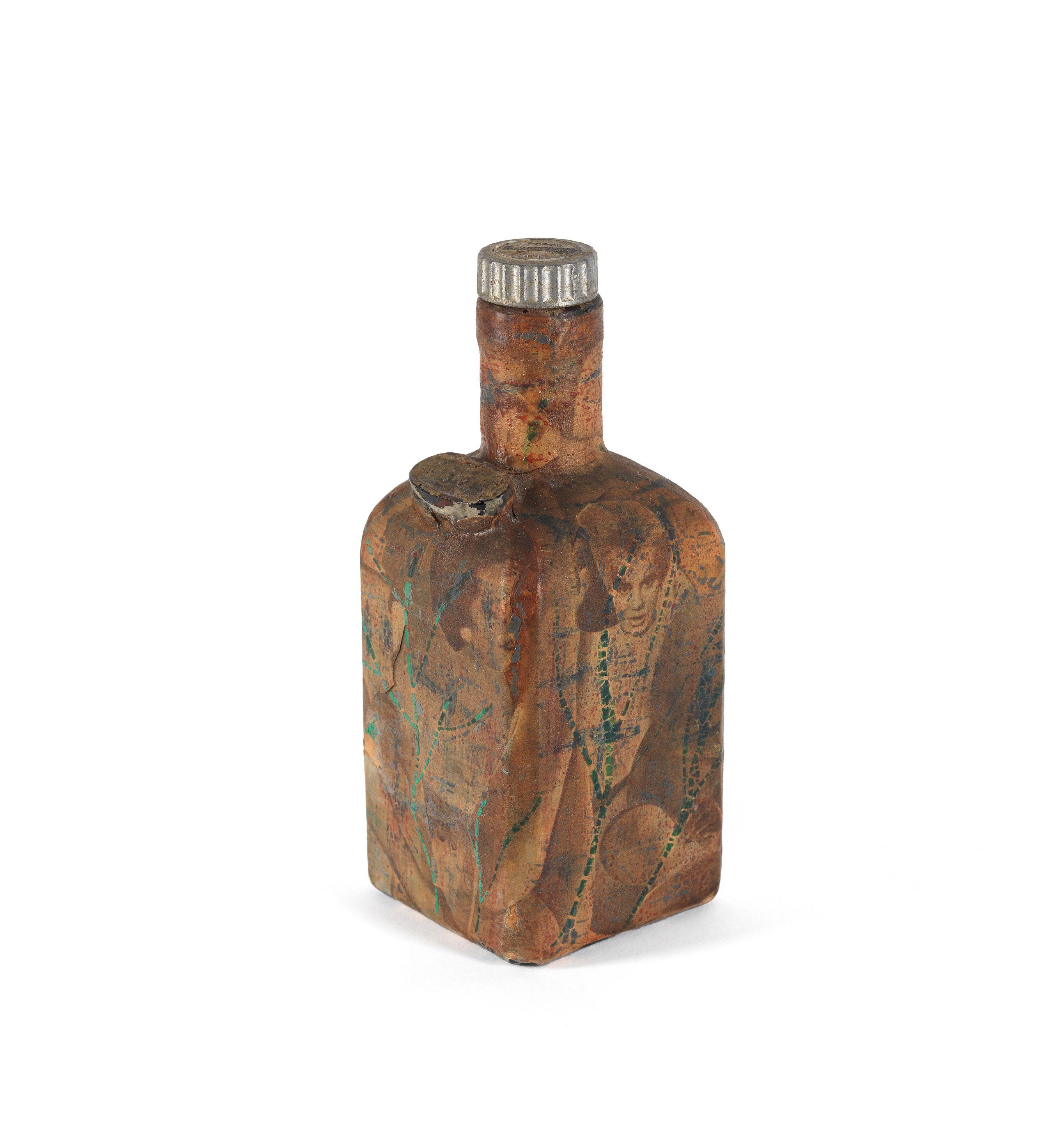 collage on a Cointreau bottle, circa 1962;