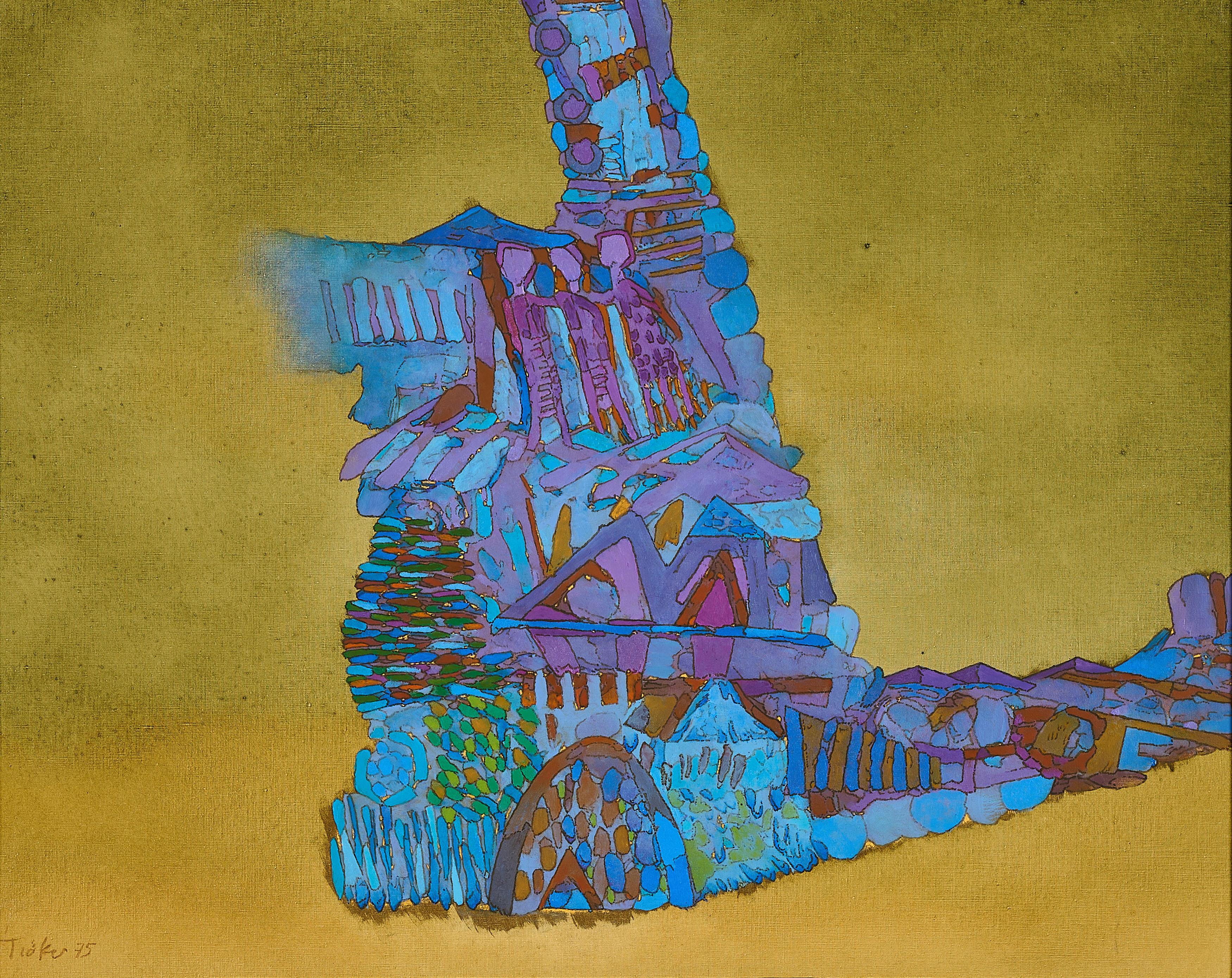 Bezeichnung: Signiert und datiert unten links: Trökes 75. Sowie betitelt und datiert verso auf dem Keilrahmen: "3 LILA GRAZIEN" 19... (verdeckt von Etikett).