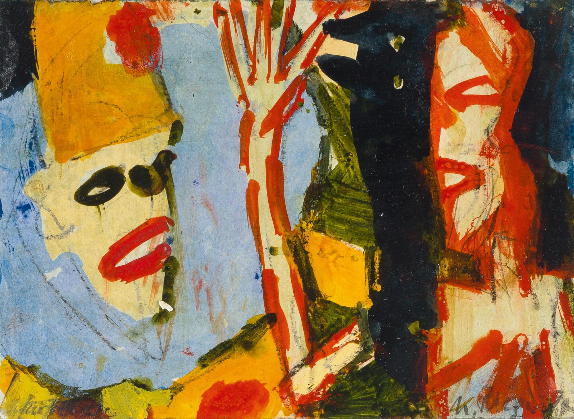 Mischtechnik auf festem Bütten. (19)84. Ca. 12 : 15,5 cm. Signiert unten rechts und bezeichnet „für Fr. Leiste“ unten links. Verso auf dem Passepartout betitelt.