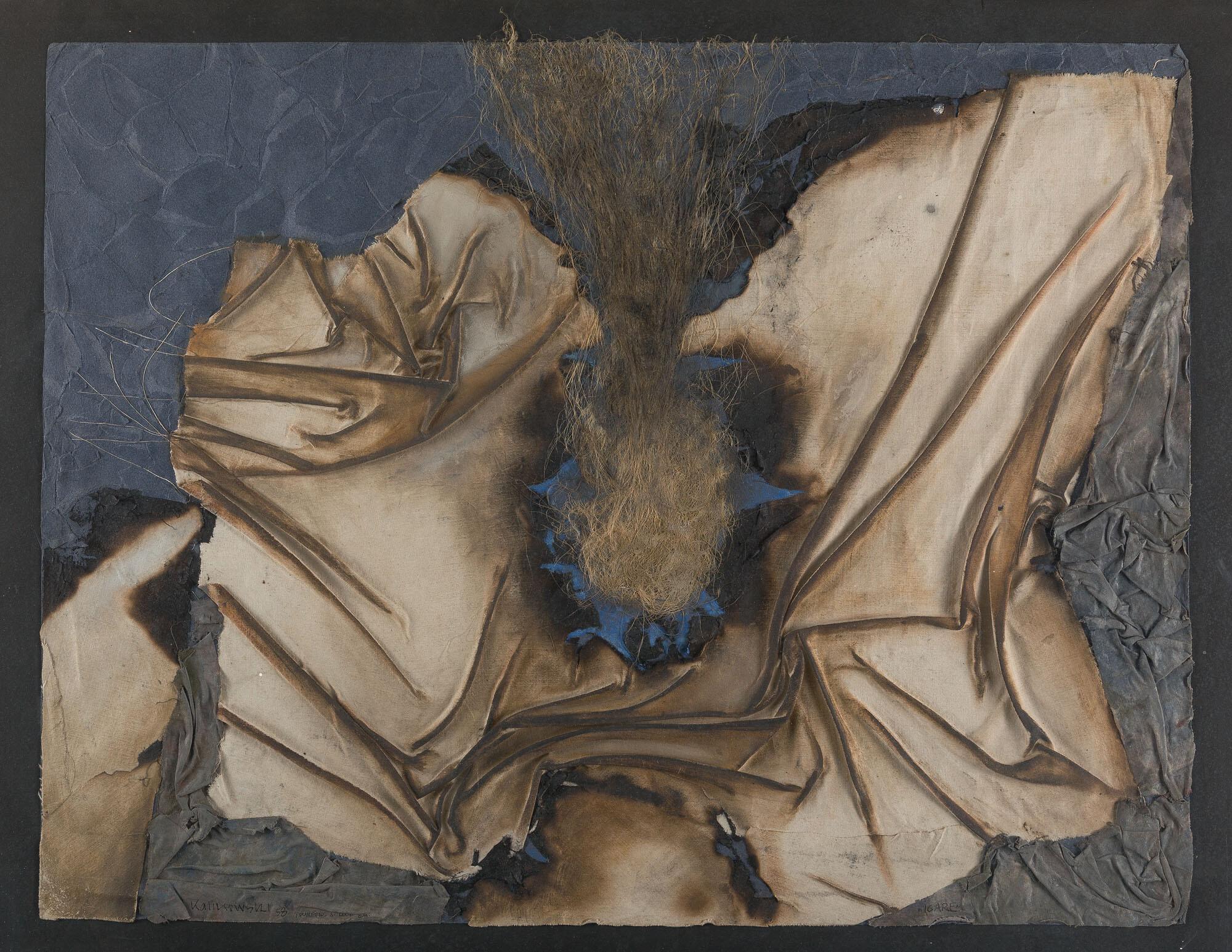 Mischtechnik und Collage auf schwarzem Tonpapier. (19)58. Ca. 57,5 : 75,5 cm. Signiert, datiert und bezeichnet mit „Tourettes S. Loup AM“ sowie betitelt unten links.