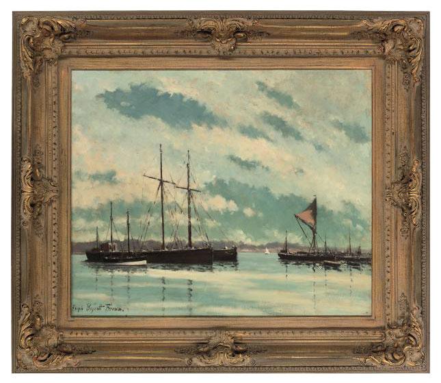 Die Arbeit A cloudy day at Pin Mill, Suffolk von Hugh Boycott Brown kam im August 2010 bei Christies in London zur Auktion. Der dabei erzielte Preis von GBP 500,00 (€ 604,46) lag im Rahmen der Erwartungen – die Schätzpreisspanne war von dem Auktionshaus zuvor mit GBP 400,00 – 600,00 angegeben worden. Freilich wurden Arbeiten von Hugh Boycott Brown auch schon für ein Vielfaches dieses Preises versteigert – das bisher höchste Ergebnis erzielte nach unseren Aufzeichnungen die Arbeit A Suffolk Windmill; Morning At Pin Mill im Juni 2007 mit einem Auktionsergebnis von GBP 3.840,00 (€ 5.698,37).