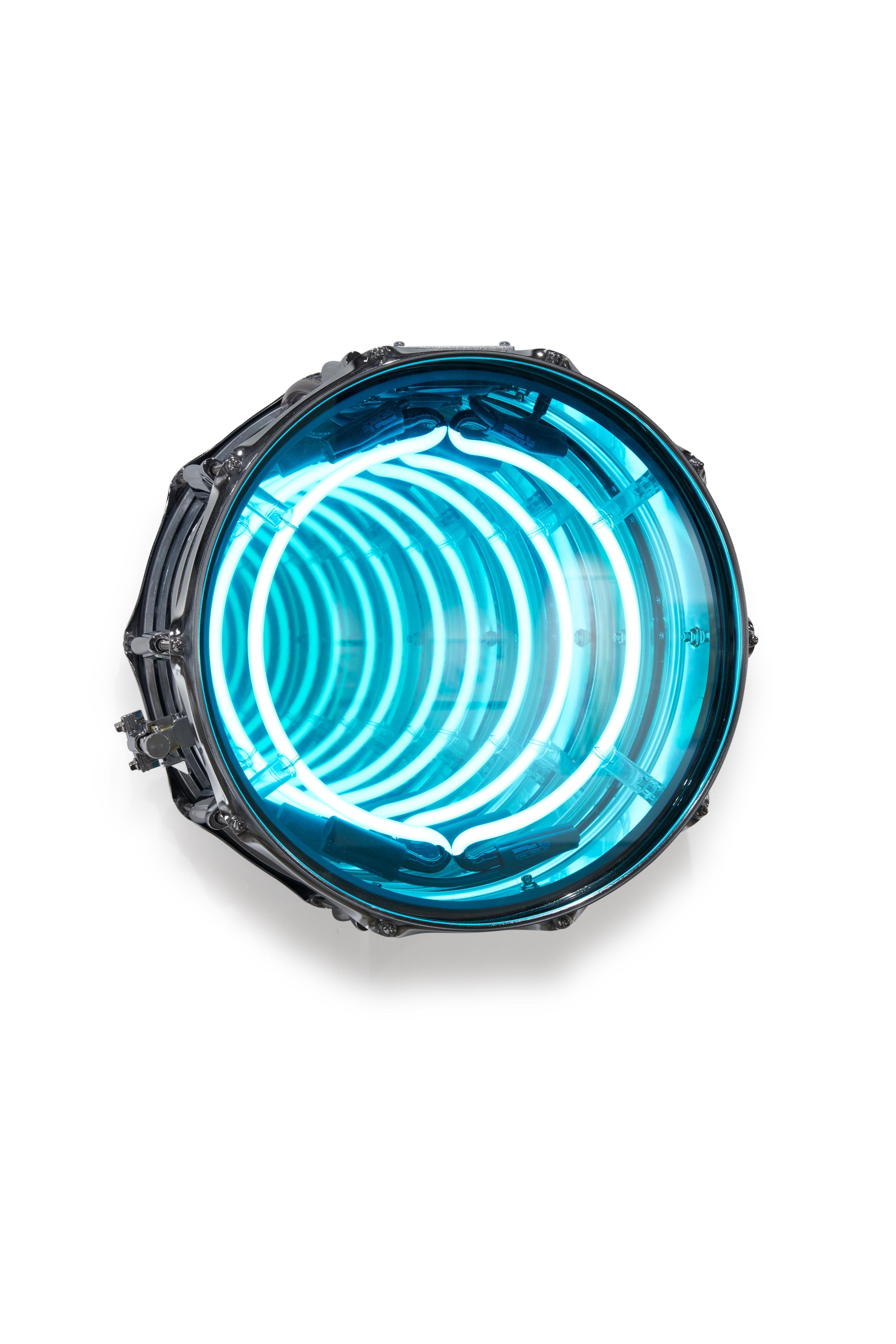 neon, metal drum, one-way mirror, mirror and electrical component