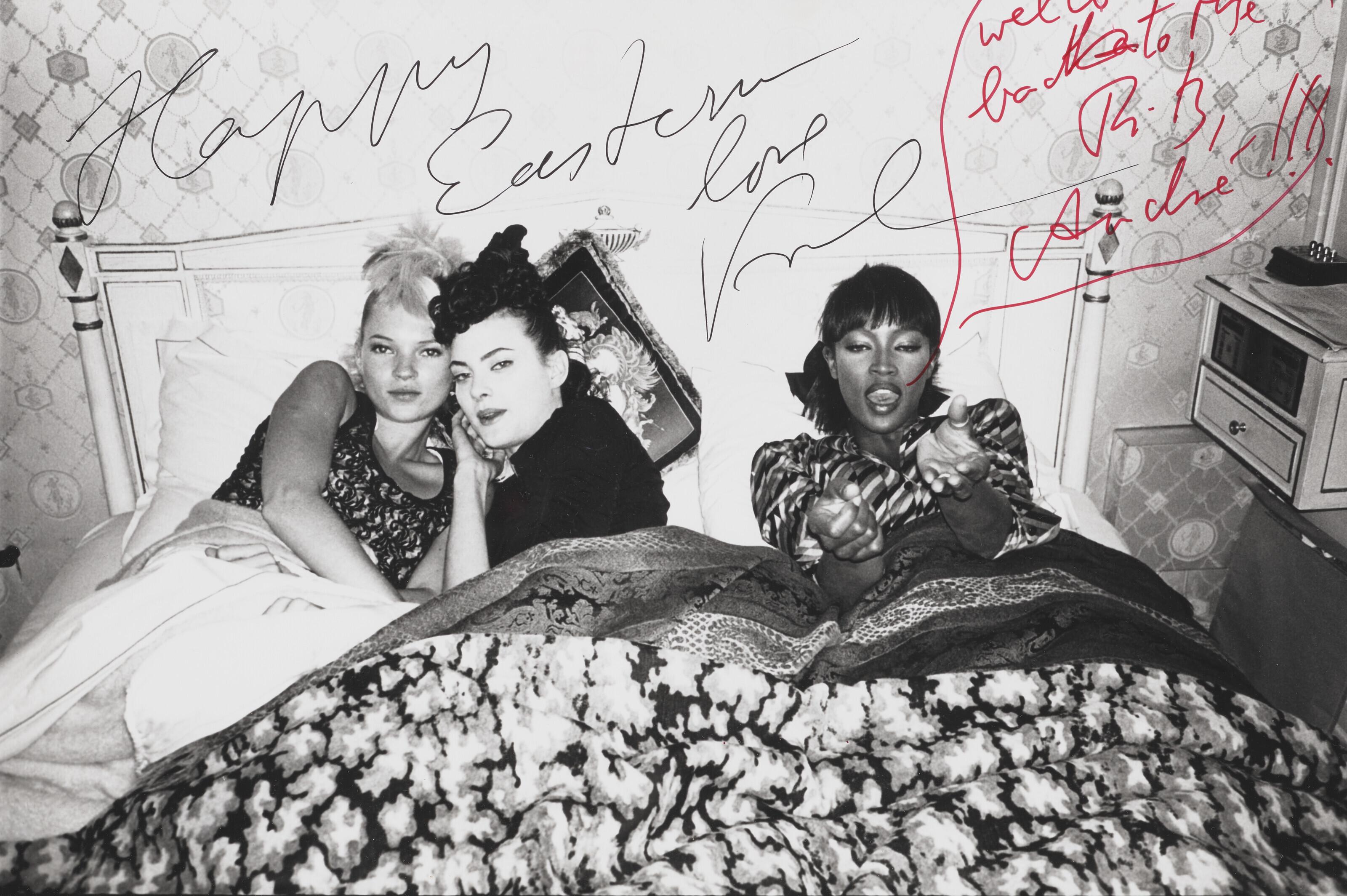 - Kate Moss, Shalom Harlow, and Naomi Campbell in bed, 1996