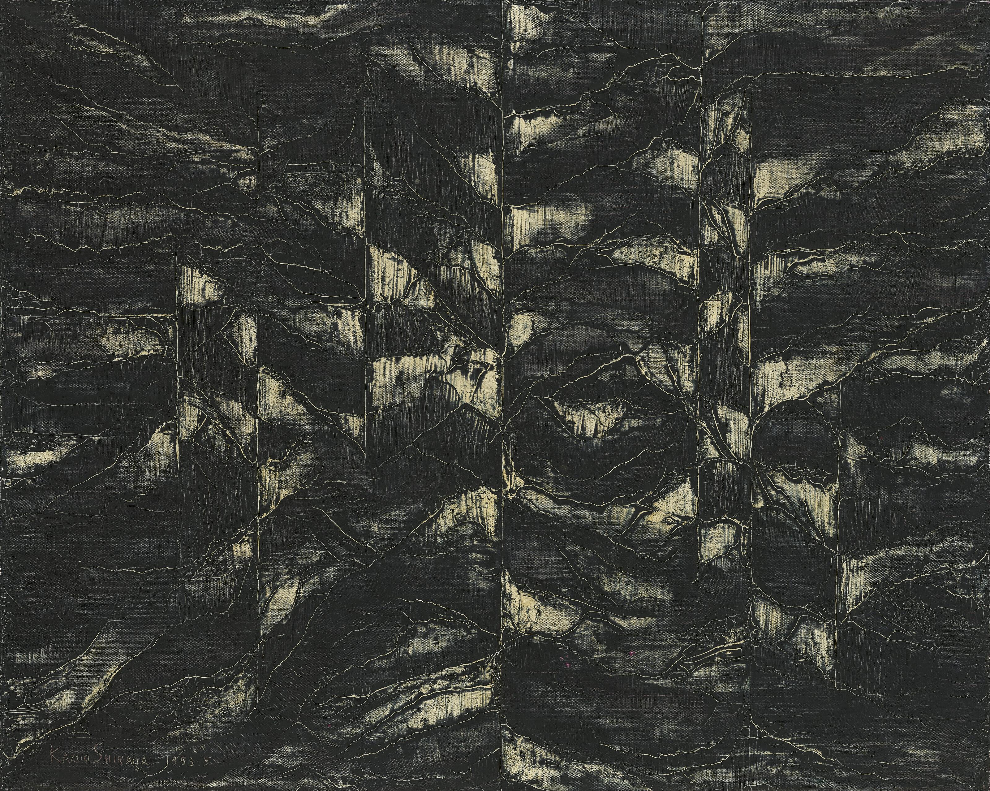 signed and dated ‘KAZUO SHIRAGA – 1953.5’ (lower left); signed and dated in Japanese (on the reverse on a label)