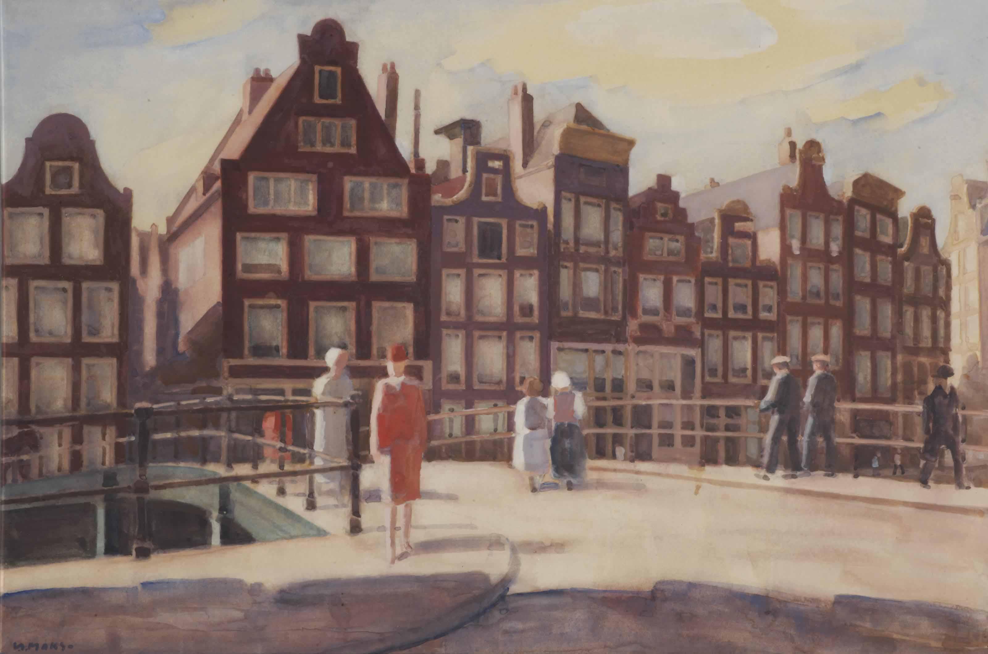 The work Figures Strolling Over An Amsterdam Canal Bridge by Kees Maks was auctioned at Christies in Amsterdam in December 2013. It changed hands for a price of EUR 5,625.00 achieving a result in the upper range of the estimate price range of EUR 4,000.00 – 6,000.00. Of course, this price has nothing to do with the top prices that other works by Kees Maks achieve. The highest price we have observed so far was reached by the work Dutch Tuinscene - Garden Scene in December 2008 with an auction result of EUR 144,750.00.