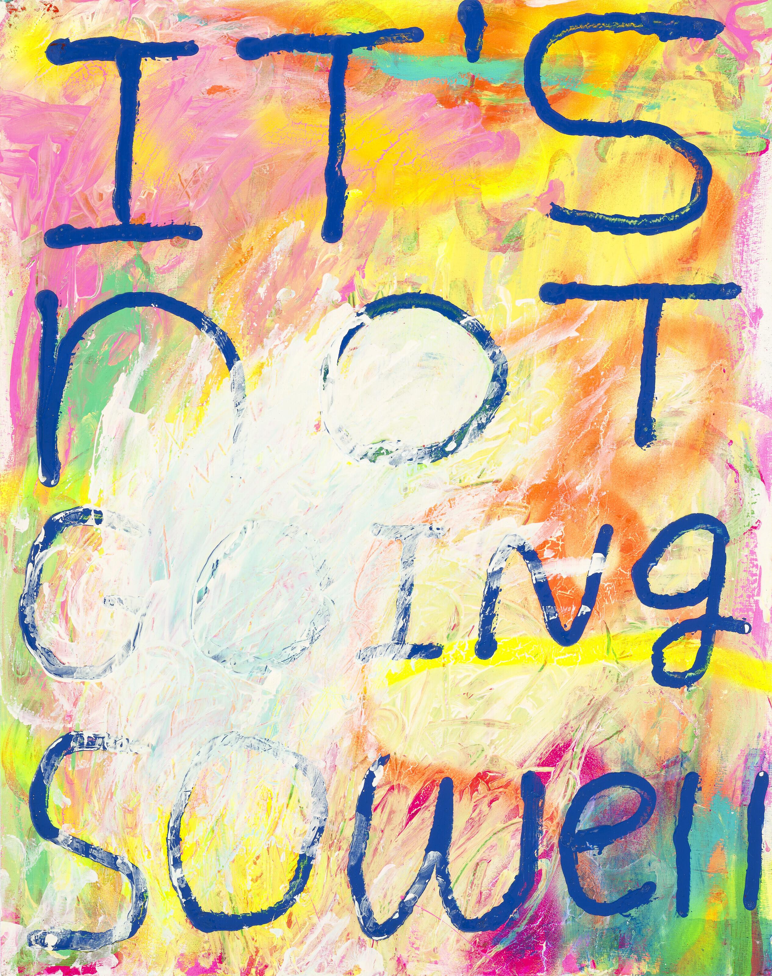 MADSAKI (B. 1974) It’s Not Going So Well signed and dated ‘Madsaki 2015’ (on the reverse) acrylic, house paint, spraypaint on wood panel 53 x 42 cm (20 ⅞ x 16½ in.) Painted in 2015
