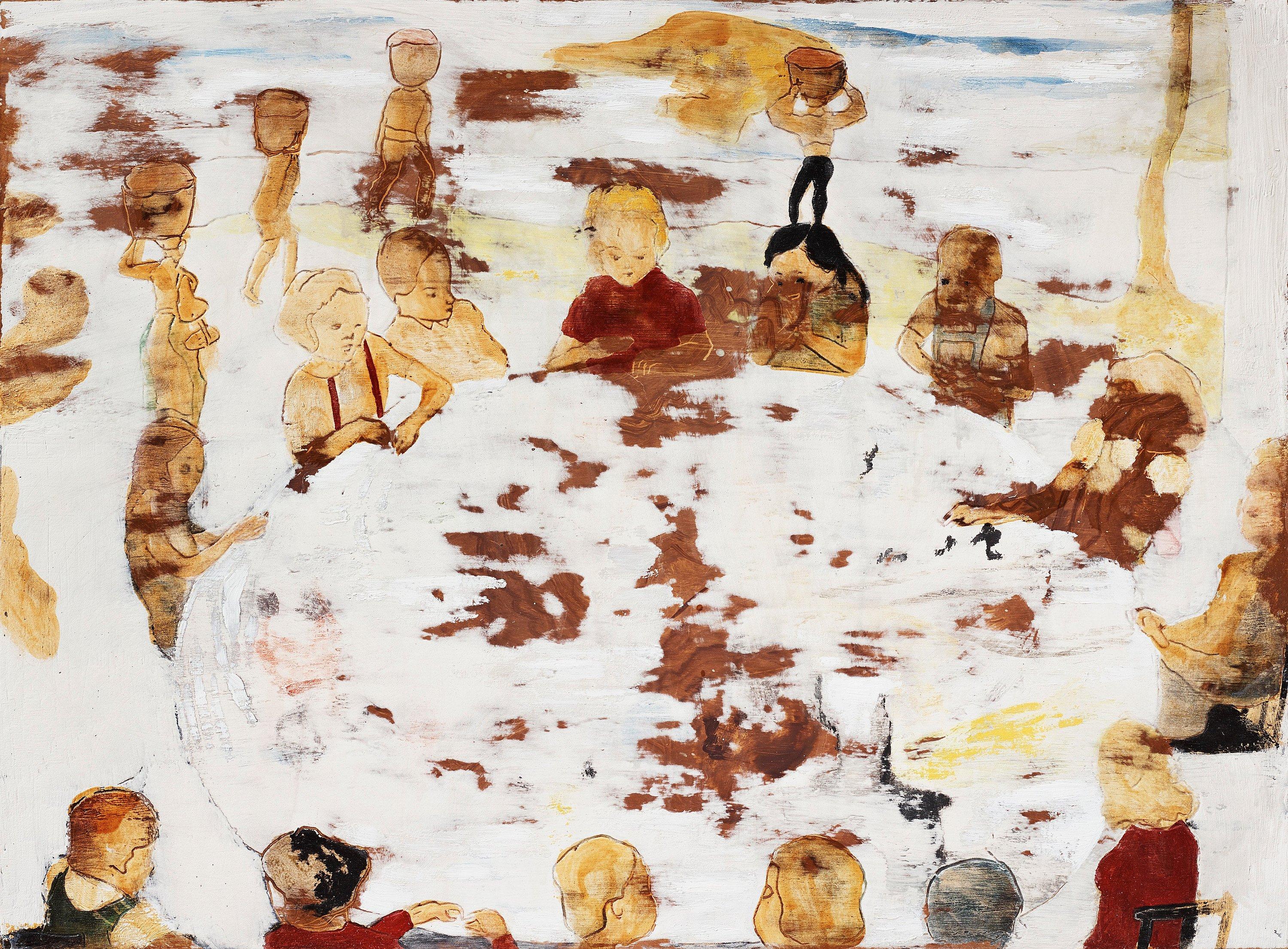 Signed Karin Mamma Andersson and dated 2000 verso. Watercolour, oil and putty on panel 44 x 59,9 cm.