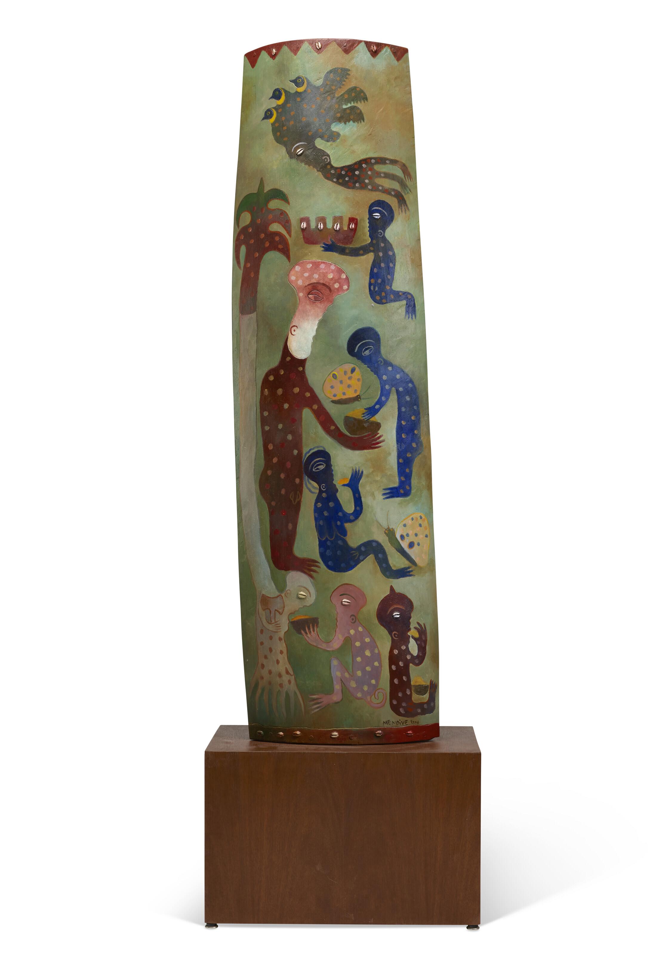 MANUEL MENDIVE (b. 1944) Bendición de Shangó signed 'MENDIVE 2006' (lower right) acrylic and cowrie shells on palm wood 58 x 16 1 ⁄ 2 in. (147.3 x 41.9 cm.) with base: 72 1 ⁄ 2 x 22 in. (184.2 x 55.9 cm.) Executed in 2006.