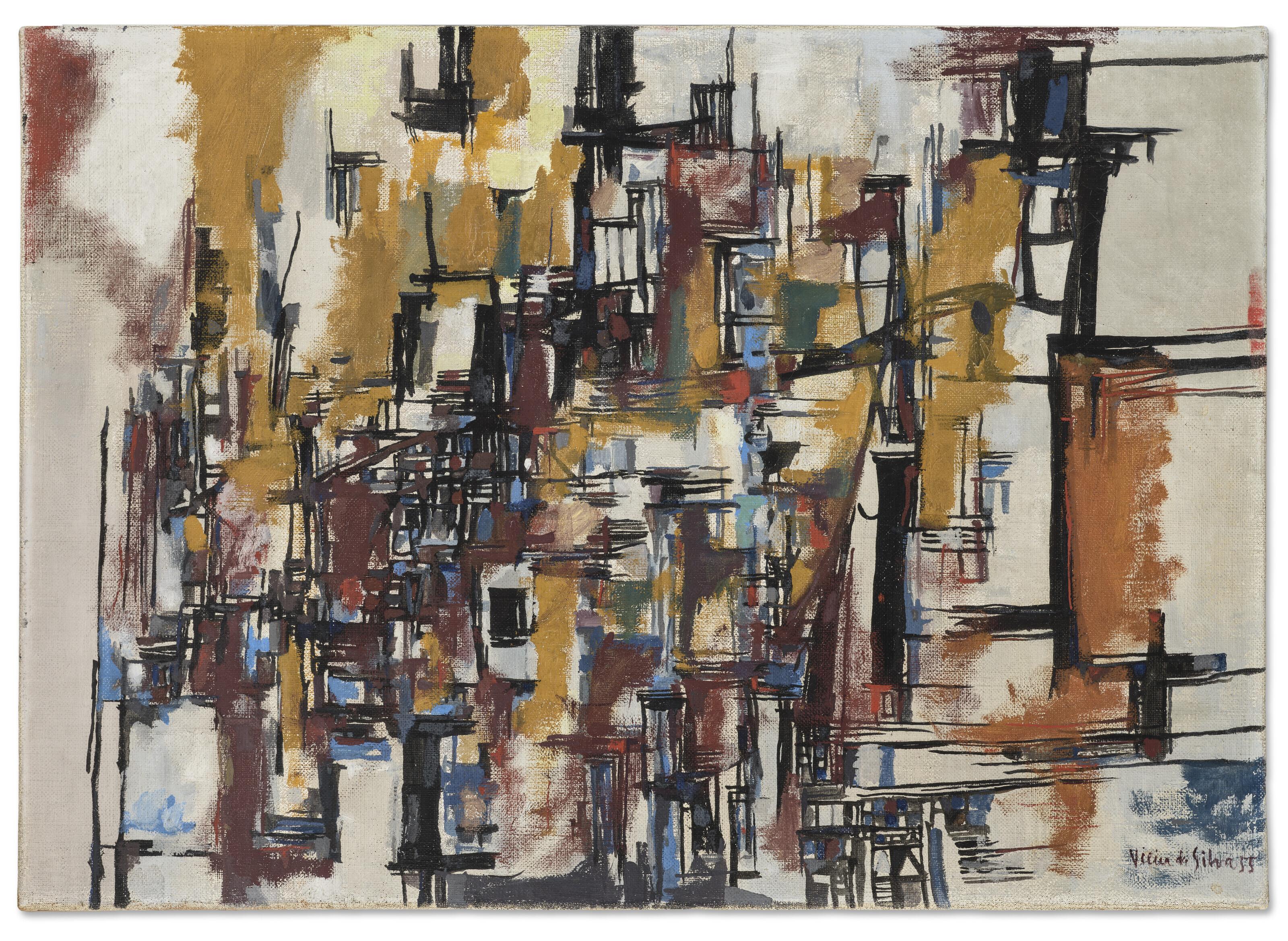signé et daté 'Vieira da Silva 55' (en bas à droite)