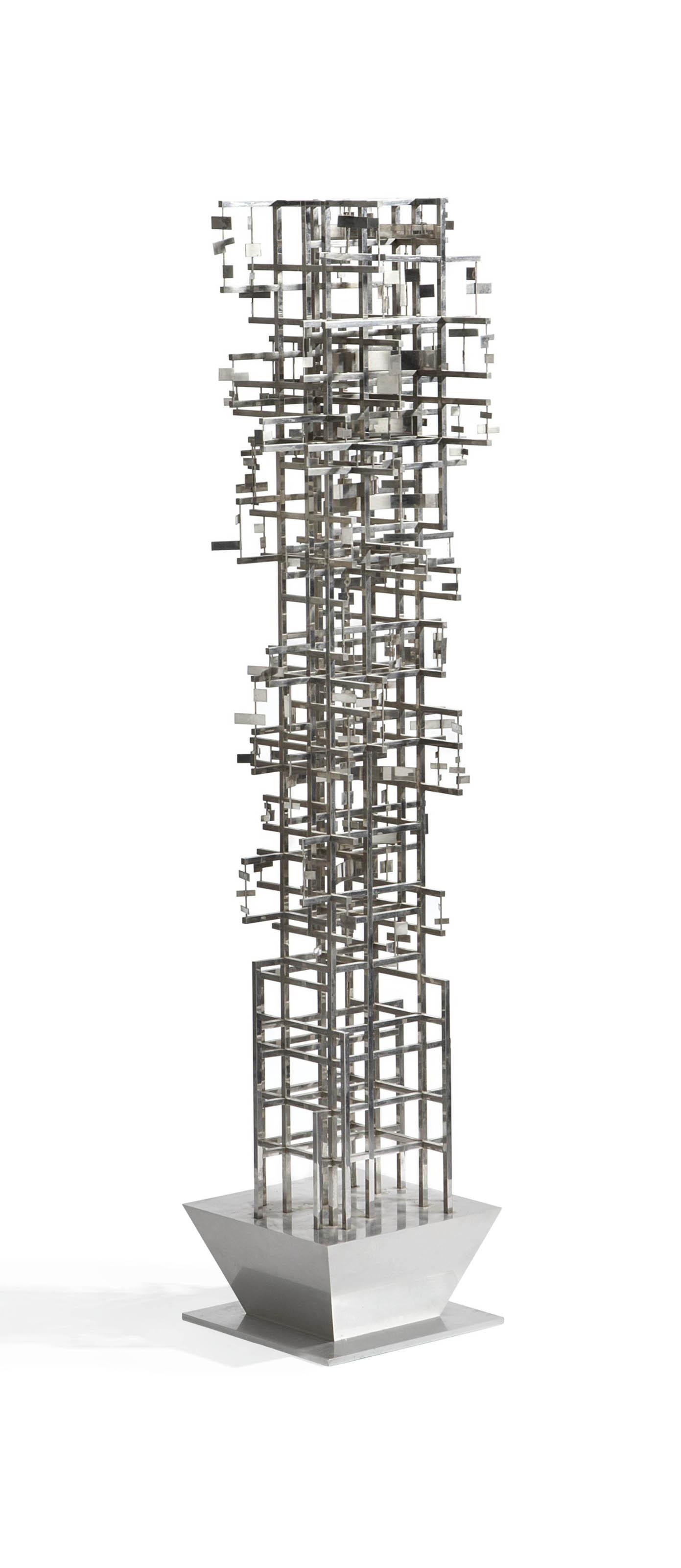 The work Tour Lumière Cybernétique de Paris-La Défense (1963) by Nicolas Schöffer was auctioned at Christies in Paris in June 2012. The price achieved of EUR 16,250.00 was within expectations - the estimate range had previously been set by the auction house as EUR 12,000.00 – 18,000.00. However, buyers have had to dig much deeper into their pockets for other works by Nicolas Schöffer - we have observed the highest auction result to date for the work Spatiodynamique 24, 1955, which sold at auction in November 2021 for EUR 47,500.00.