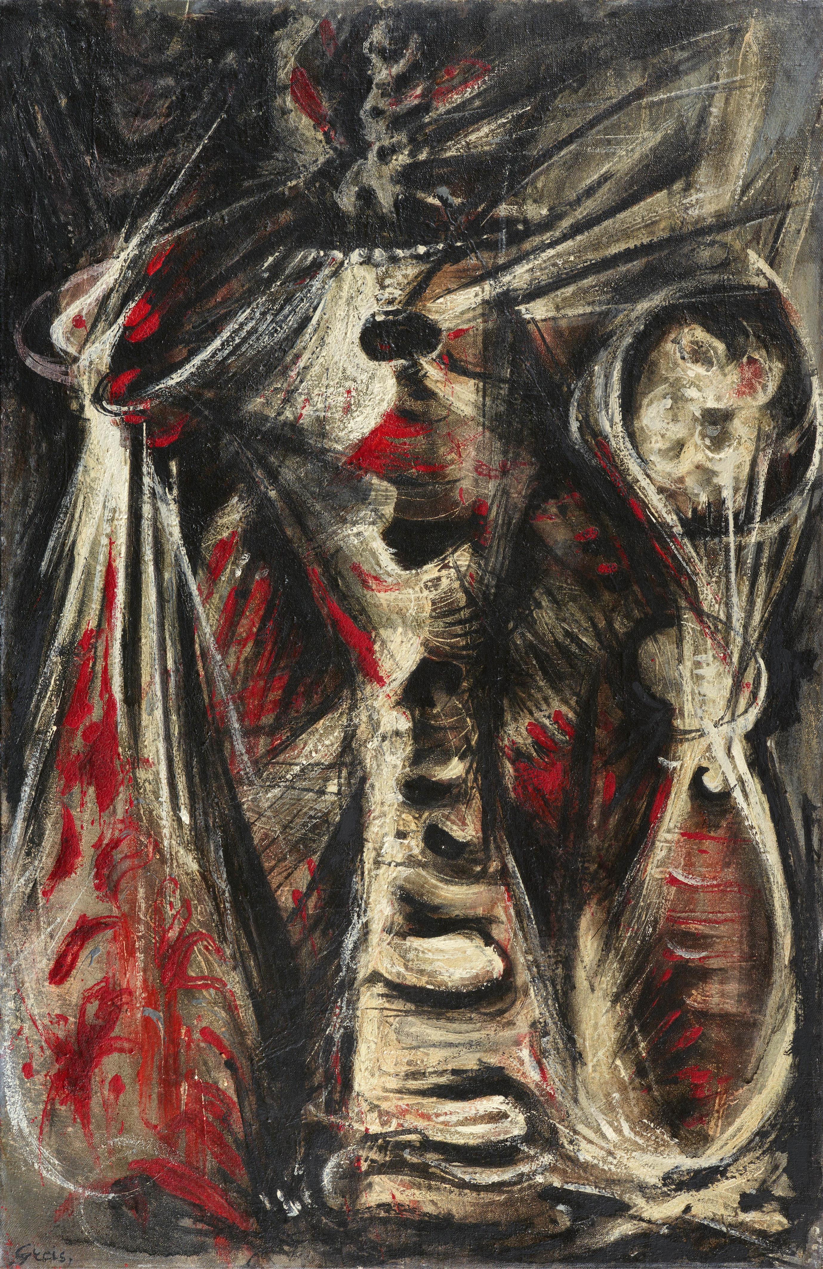 Öl auf Leinwand. 92,3 x 59,8 cm. Gerahmt. Signiert 'Greis'. Rückseitig auf der Leinwand signiert, datiert und beschriftet 'TRGS., NOV. 55, Greis' sowie mit Maßangaben. - Mit geringfügigen Altersspuren.